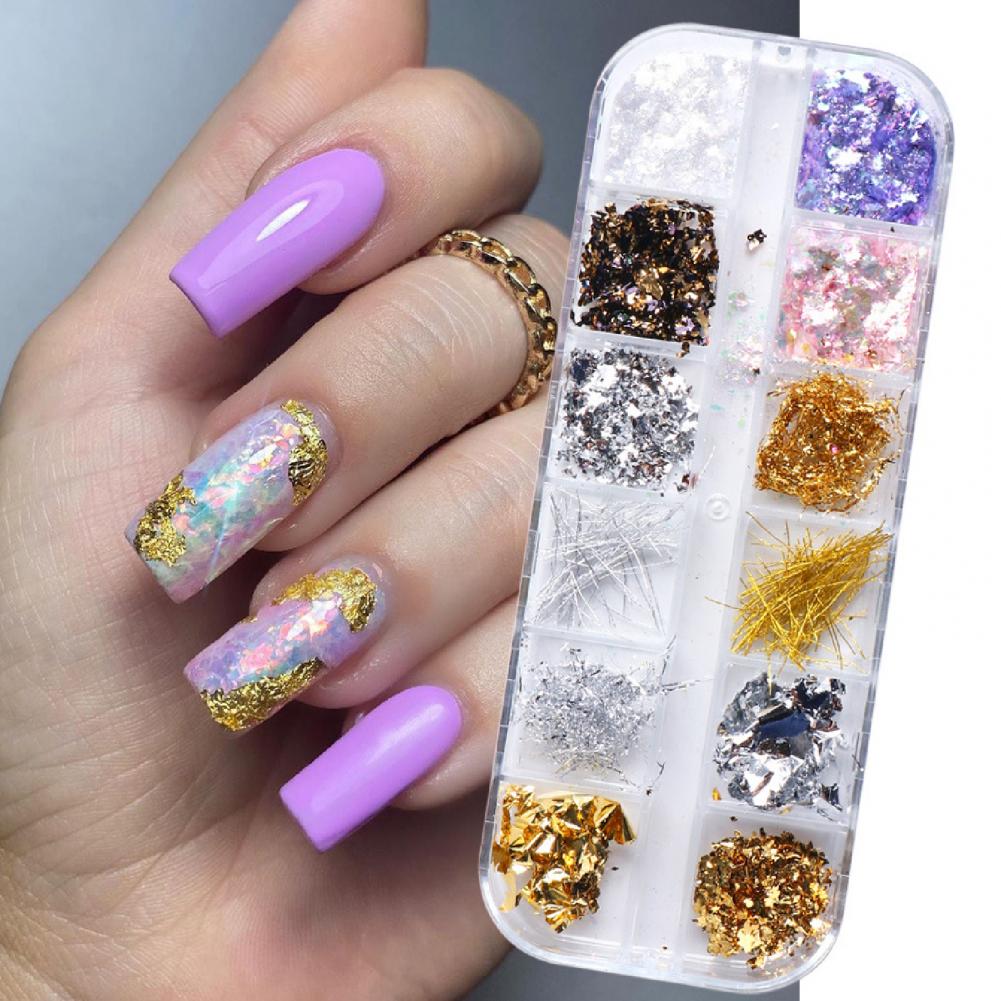 1 коробка 12 Сетки блестящая Фольга для ногтей легко управлять металлическими ремеслами делая золотую фольгу хлопья гвоздь аксессуары