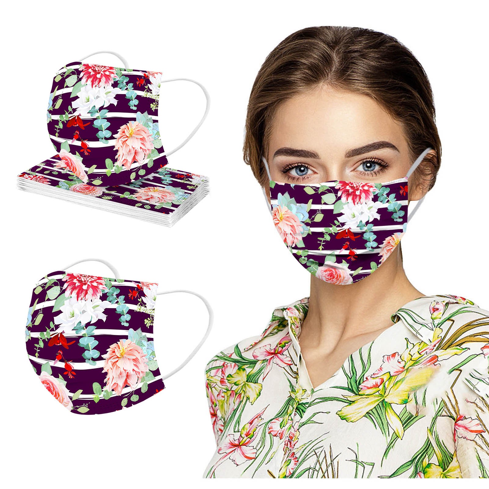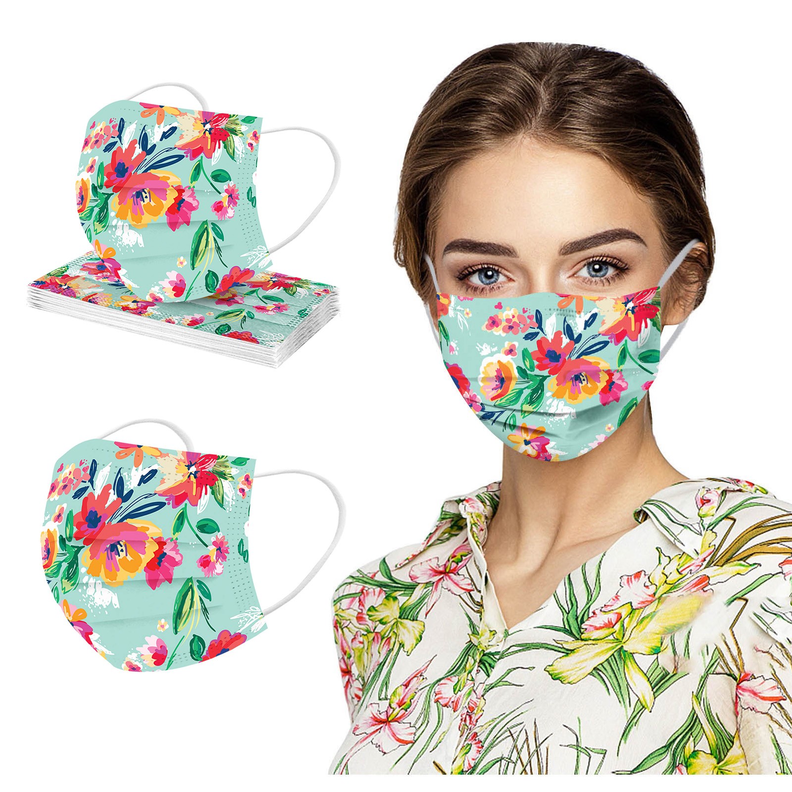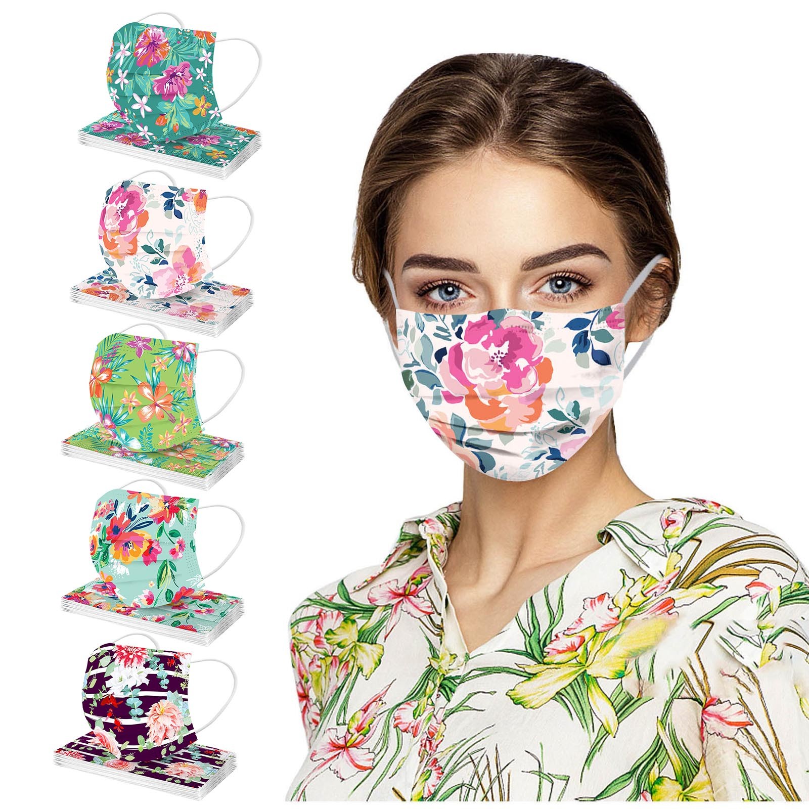 Маски с цветочным принтом для защиты лица одноразовая маска для ушей