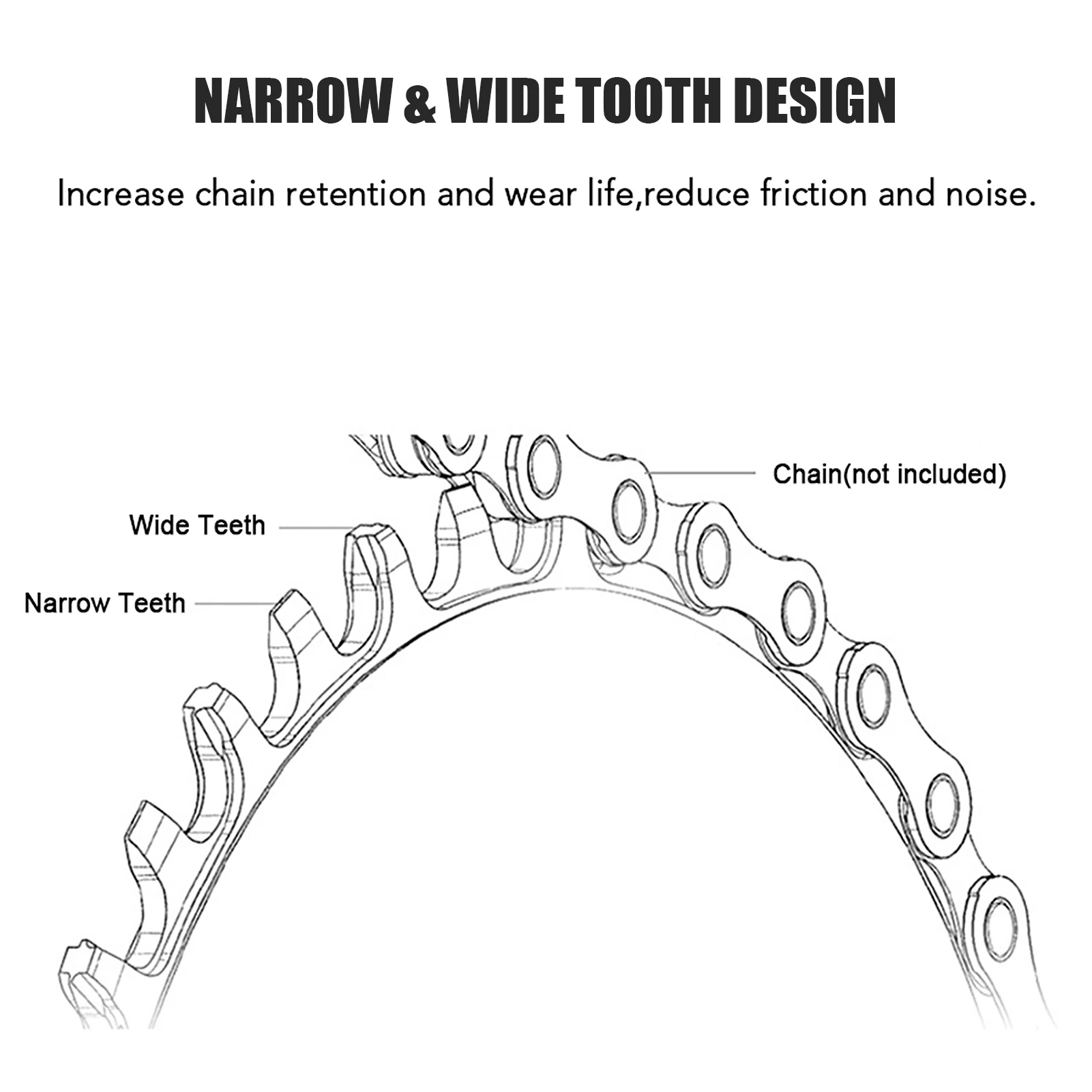 Узкие и широкие зубья увеличивают срок службы цепи, уменьшают трение и шум.