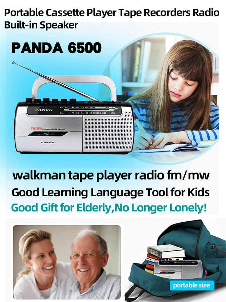 PANDA 6500 хит продаж Многофункциональный портативный кассетный плеер магнитофон FM MW радио Walkman со встроенным динамиком микрофон для музыки, изучения языка, преподавания, студентов, пожилых людей подарок бесплатная доставка