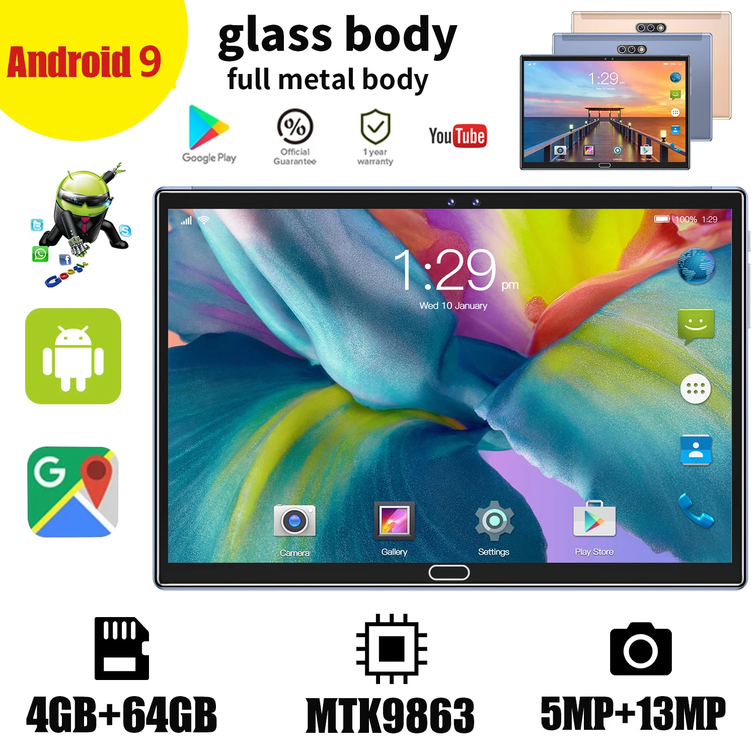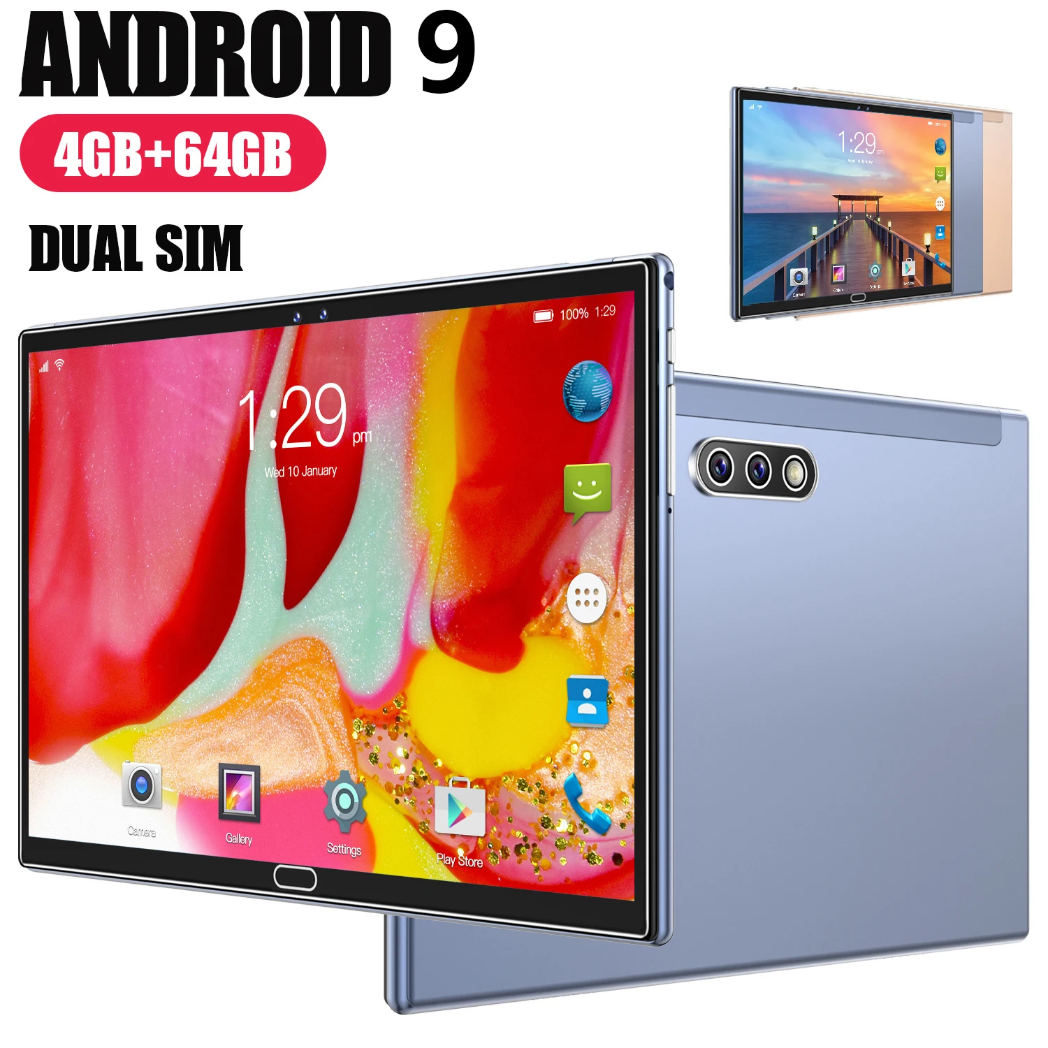 2021 10,1 дюймовый планшет, большой экран высокой четкости, 4G Android 9,0, 4 Гб RAM, 64 ГБ ROM