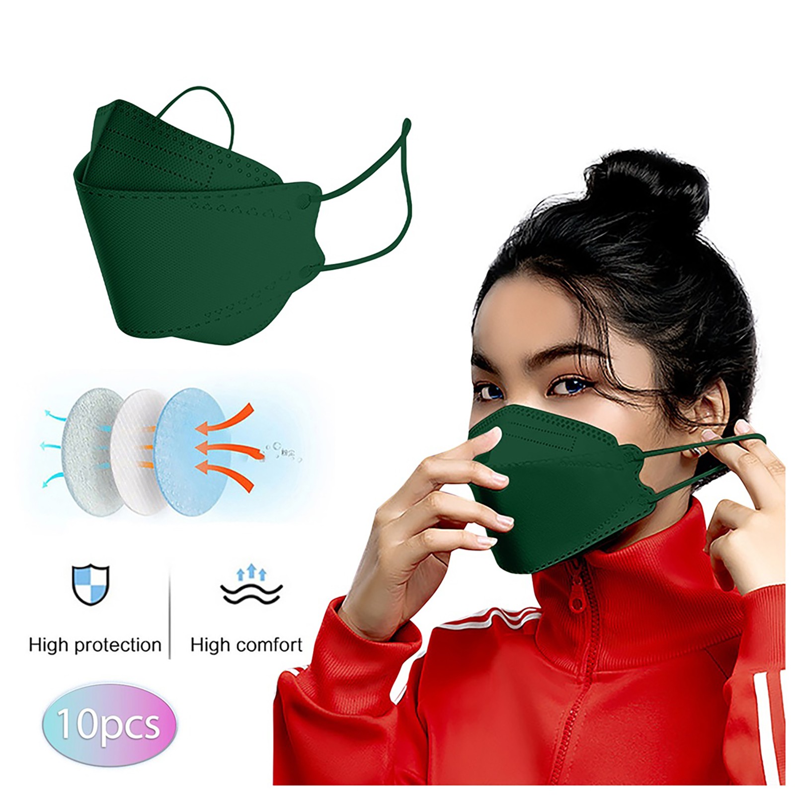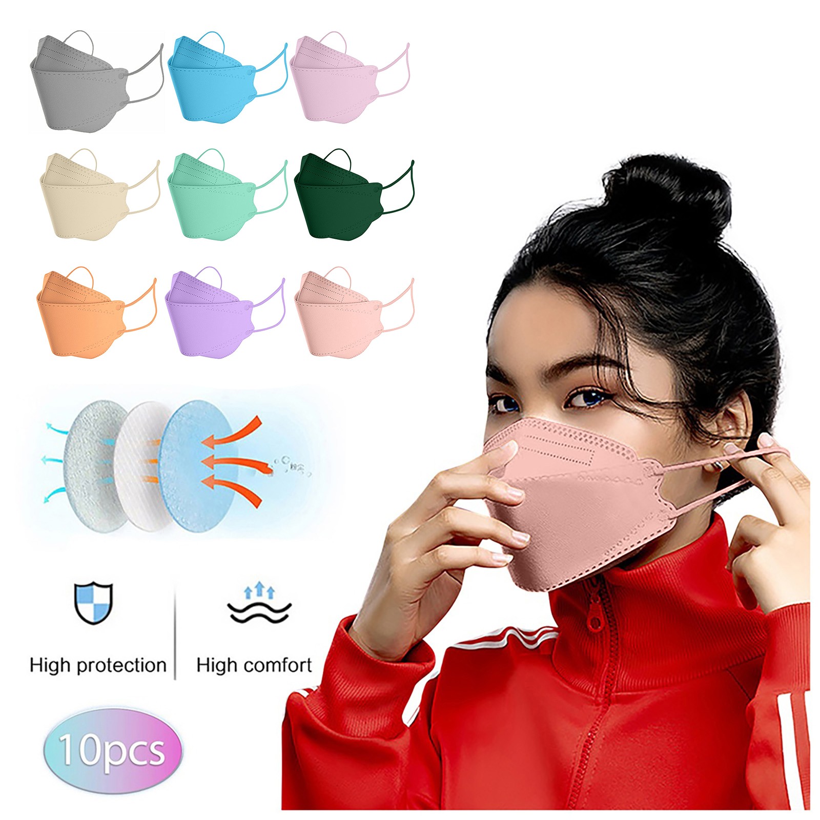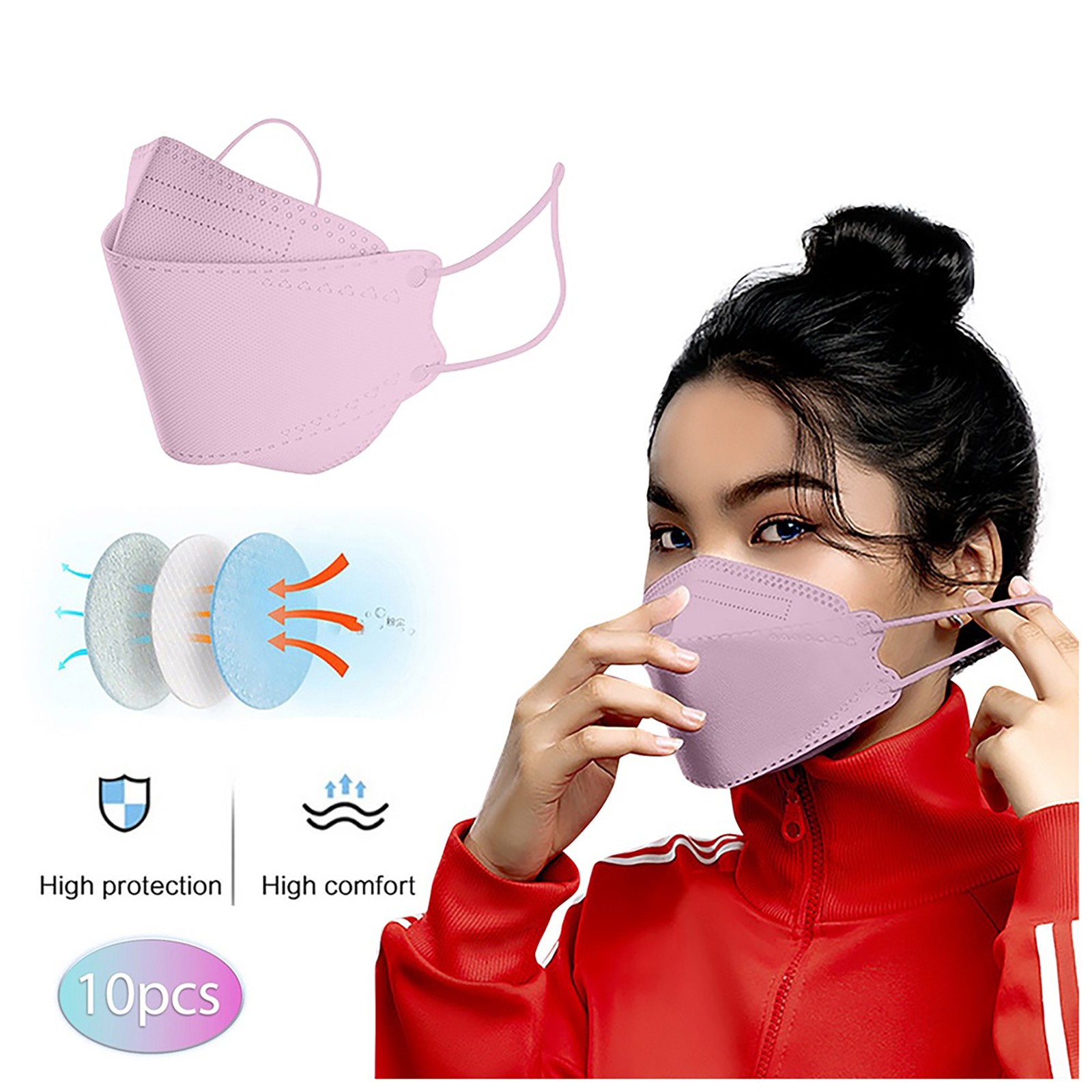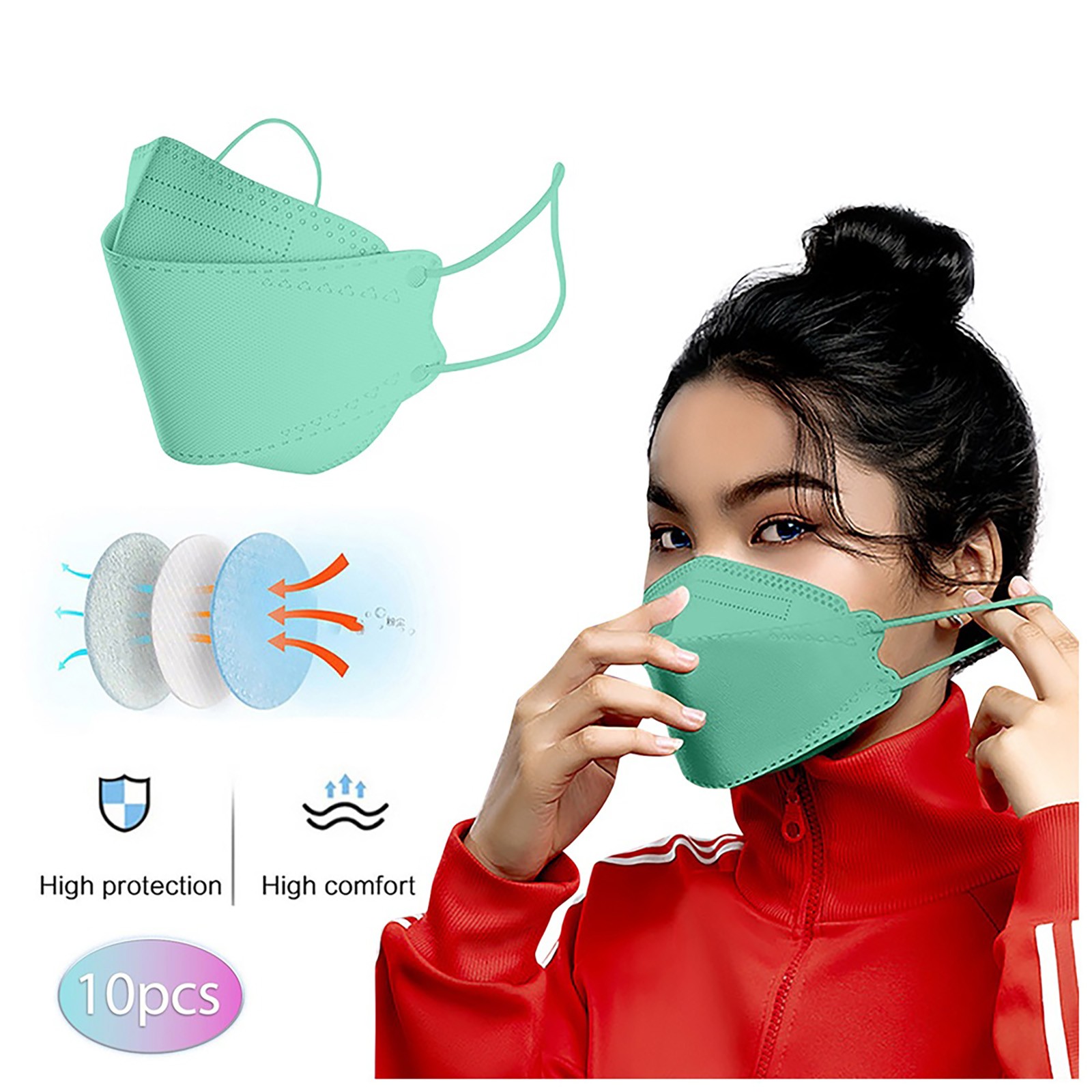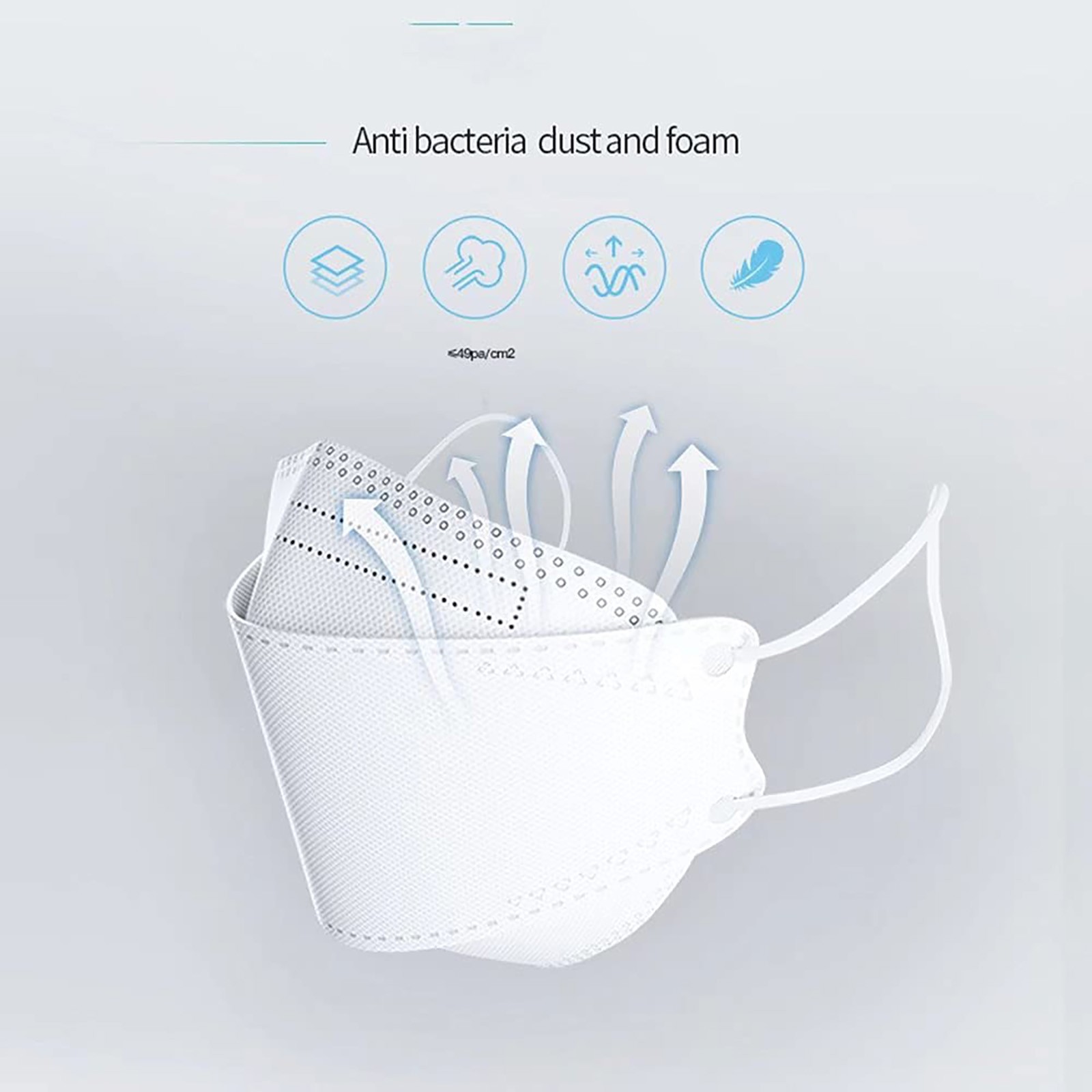 Удобная эластичная петля для ушей, Сверхмягкие петли для ушей устраняют давление на уши. Регулируемый зажим для мостика обеспечивает безопасную посадку для лучшей защиты и делает предметы плотно прилегают к лицу, избегая попадания Нефильтрованного воздуха непосредственно в него.