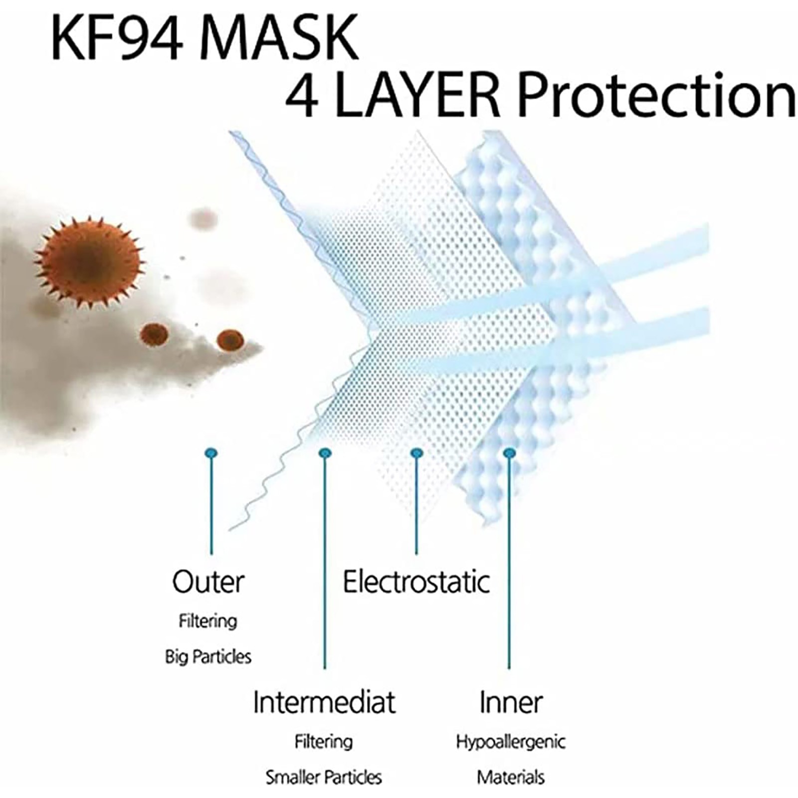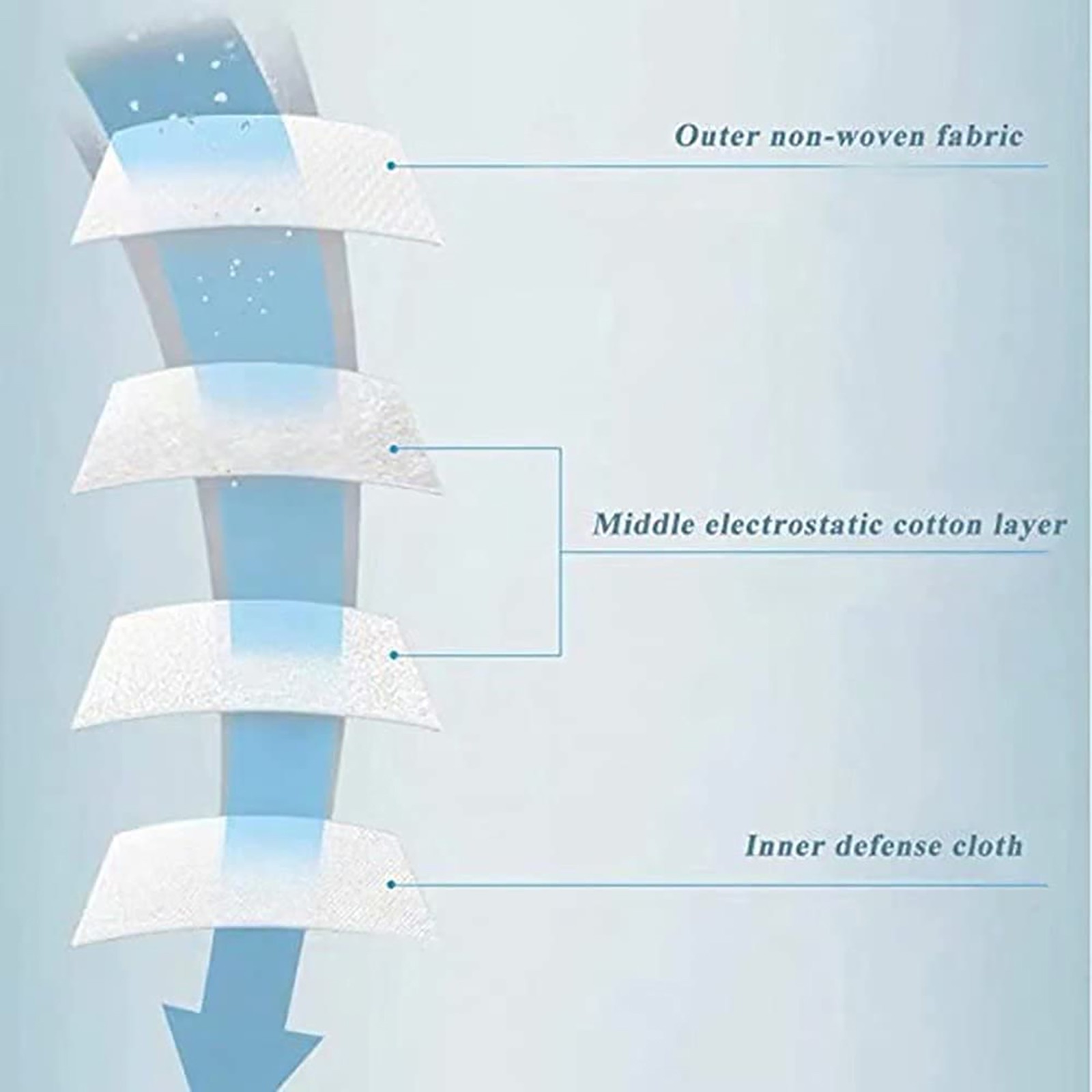 Внешний non-ткани, 2 слоя среднего электростатический слой хлопка и внутренняя ткань. 4-слойная Нетканая маска для лица имеет 4 слоя s, которые могут не только блокировать разбрызгивающую жидкость в воздухе и частицы в воздухе, но также плавно Вытяните горячий воздух, дыша.