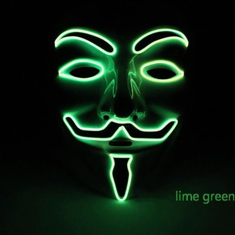 Вечерние Маски для Хэллоуина, светящаяся маска Vendetta, оптовая продажа, светящаяся танцевальная мигающая маска, маска для туши, ужас