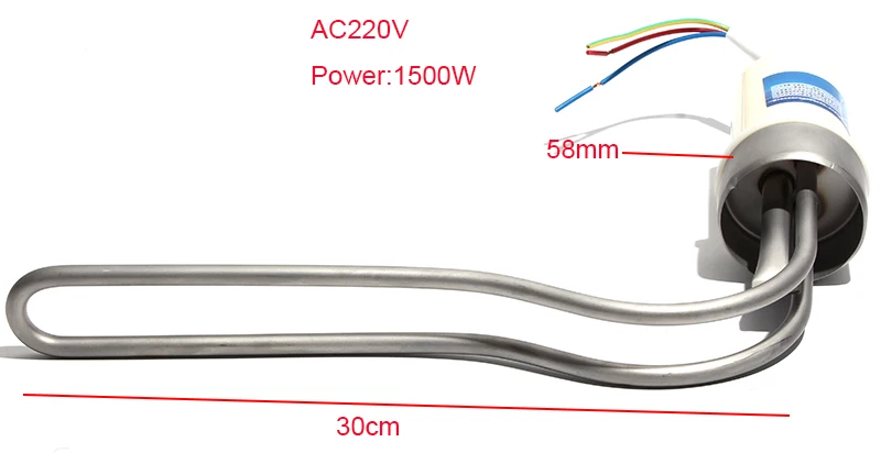 Электрический водонагреватель Нагревательный элемент 33/30 см длина трубки AC220V 1500 Вт/3000 Вт для 58 мм установки калибра солнечных водонагревателей