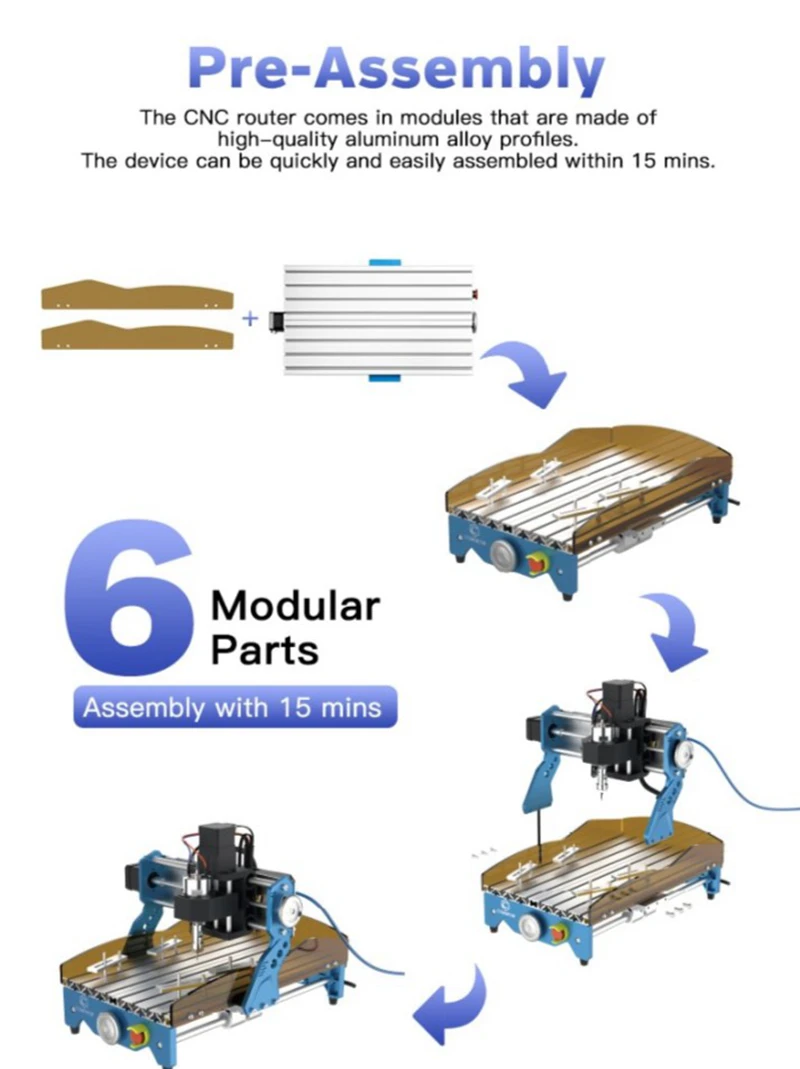 Он поставляется как предварительно собранный комплект, но легко и быстро собирается даже для начинающих с небольшим мастерством. Прочная литая алюминиевая рама обеспечивает надежное удержание во время процесса гравировки и точные детали гравировки. Кроме того, z-зонд позволяет начать использование CNC в течение короткого времени после сборки.