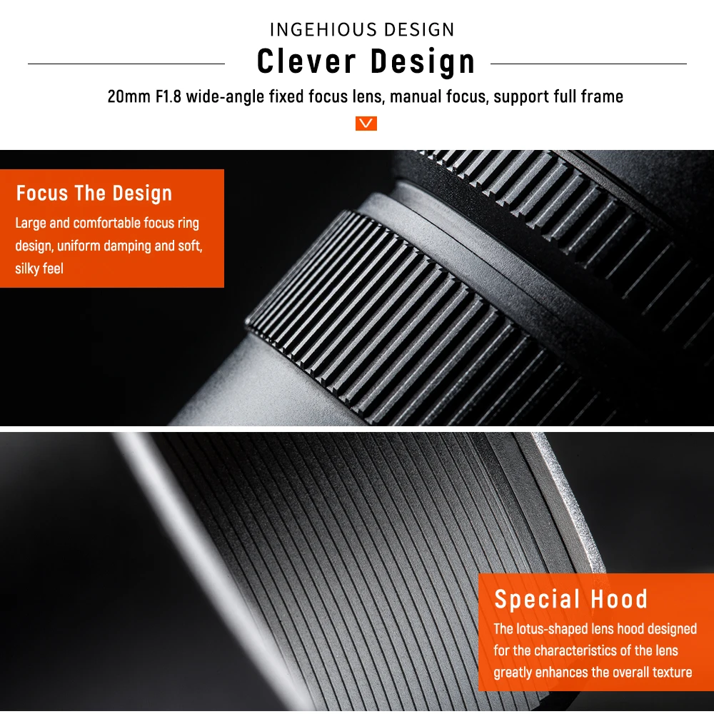 20 мм F1.8 широкоугольный объектив с фиксированным фокусом, ручной фокус, поддержка полной рамы.