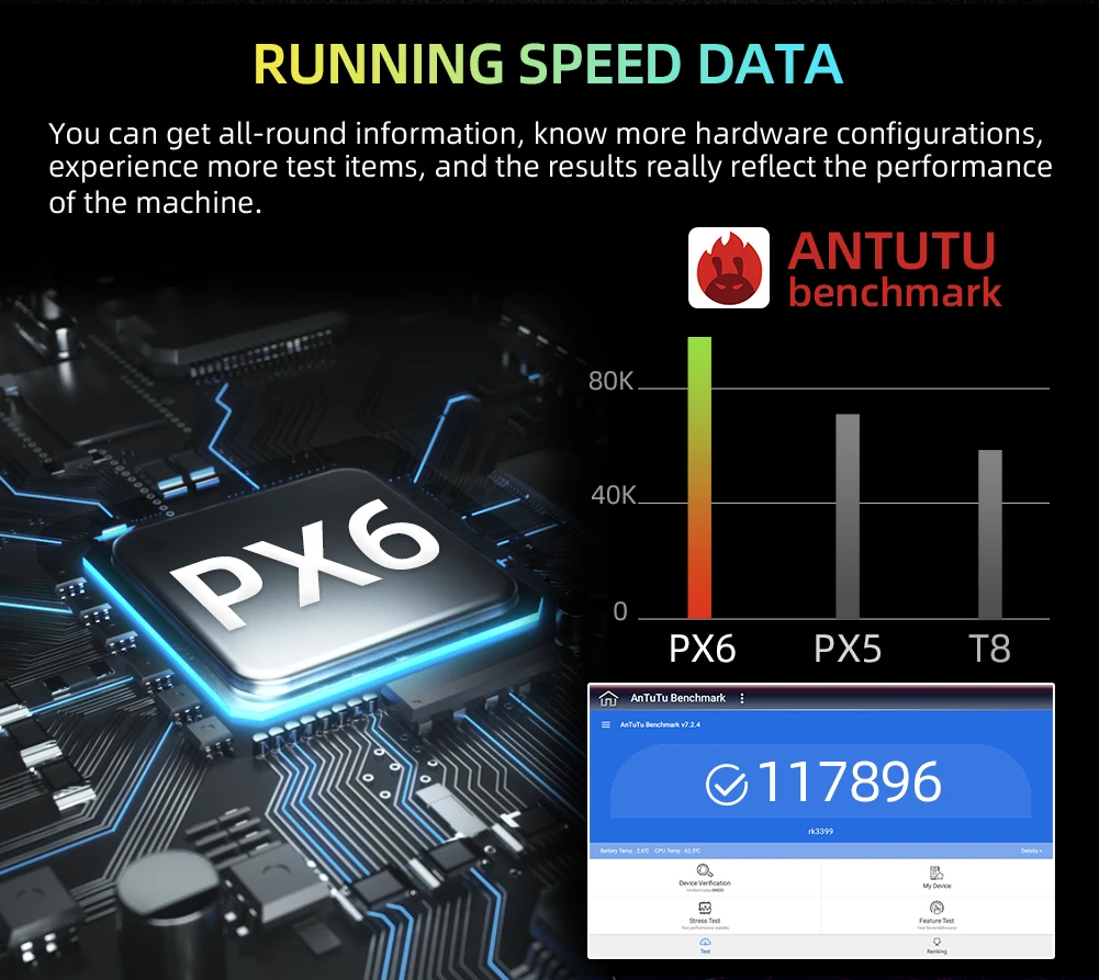1. Процессор: PX6 Cortex A72 + A53, Android 10,0
