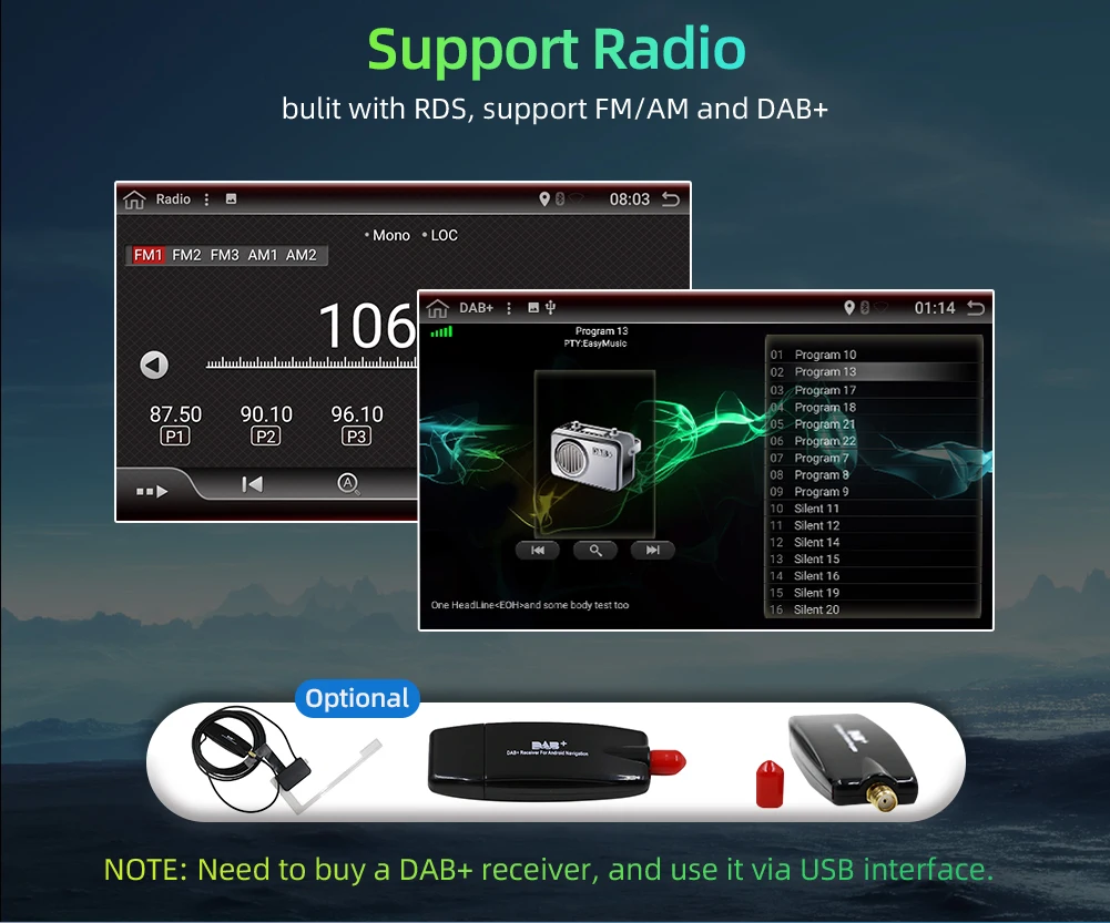 ▲Поддержка Dab + Радио, зеркальная ссылка и оригинальная функция управления рулевым колесом автомобиля, USB & micro SD до 500 Гб, встроенный WiFi Интернет, Google Maps онлайн навигация, Бесплатная автономная навигация по карте, магазин Google Play