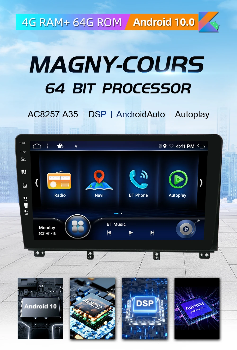 ▲-На базе Android 10.0 операционная система-AC8257 A35 /Octa Core /4 ГБ ОЗУ/64 Гб ПЗУ-Бесплатная камера заднего вида-Максимальная емкость, не более «недостаток» в памяти, делает обработку данных более эффективной, в то время как режим ускорения оптимизирован быстро и плавно