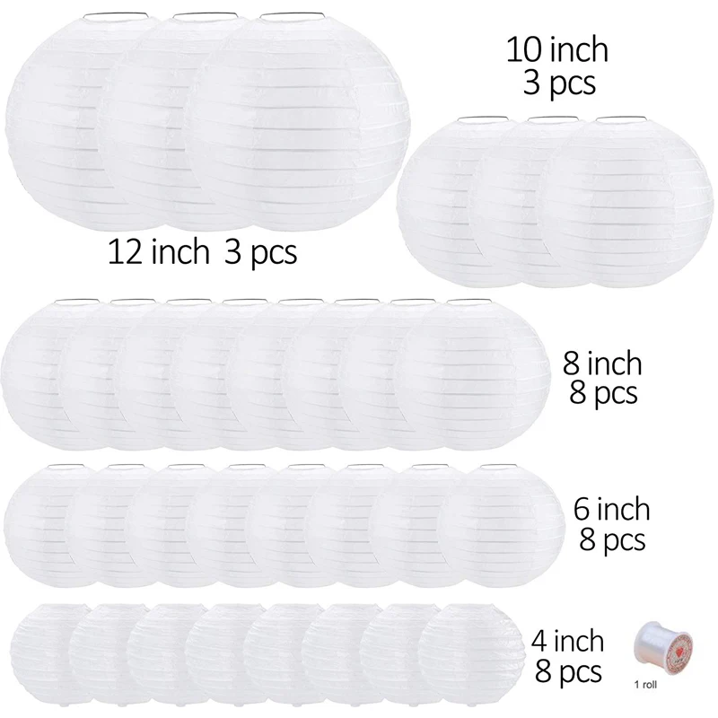 Размеры: бумажные фонари доступны в 5 различных размерах 12 ", 10", 8 ", 6" и 4 ". Каждый бумажный фонарь легко собрать и повесить