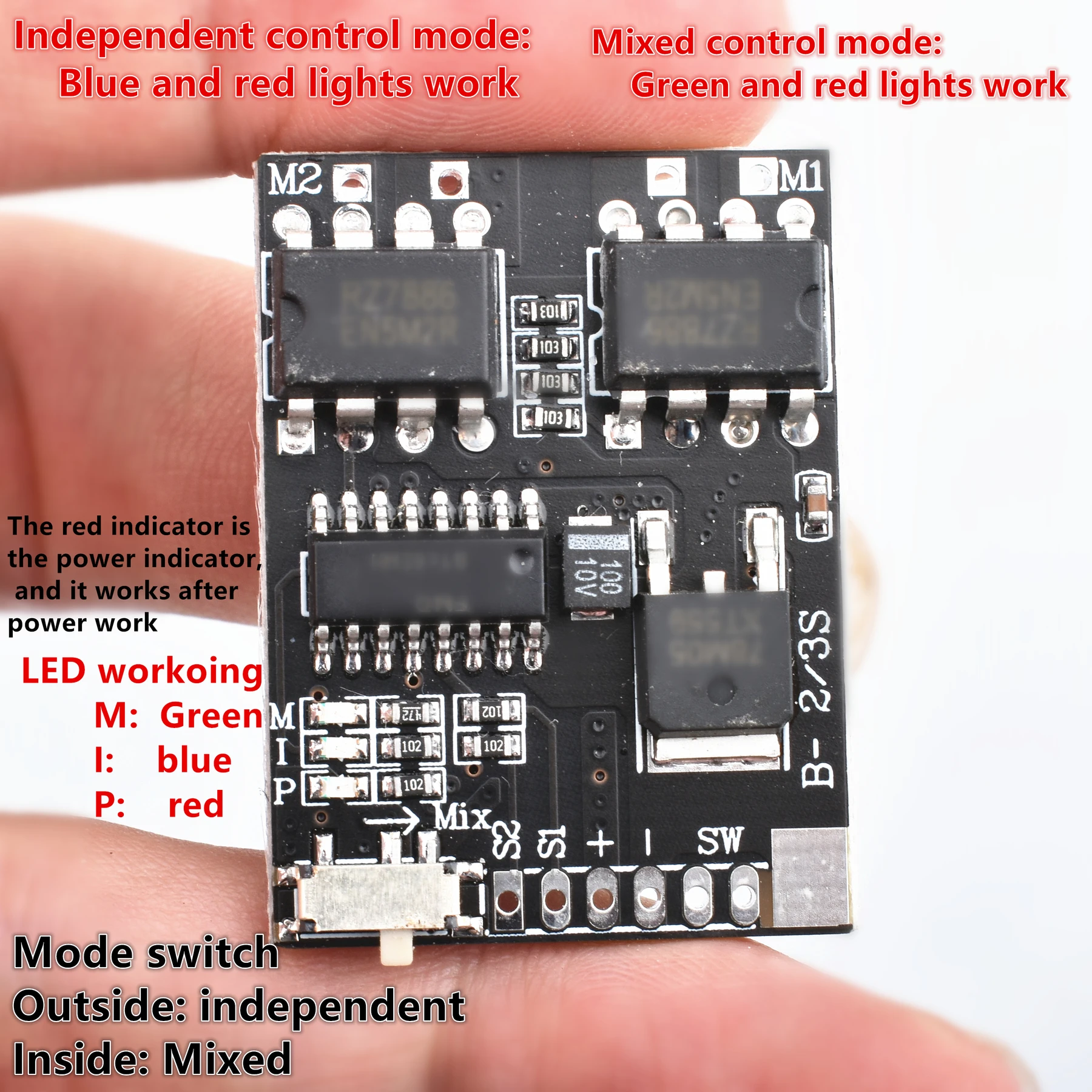 2.Напряжение 6v-14v одноканальный 5A, с переключением между дальним и канал ток срабатывания 7A (применимо 2/3S литиевая батарея и т. д., 4S не допускается)
