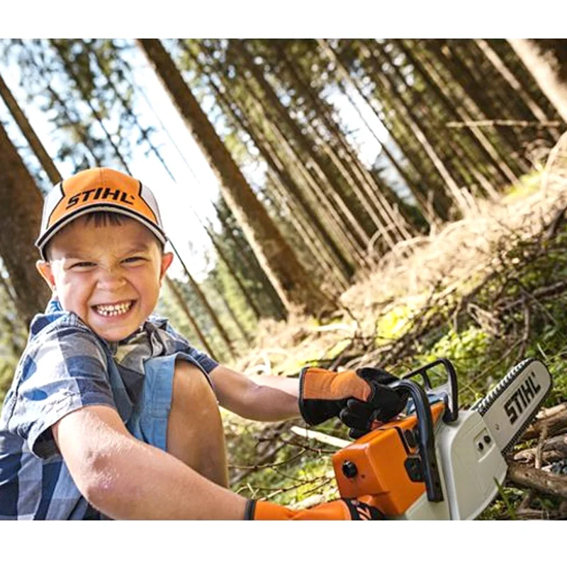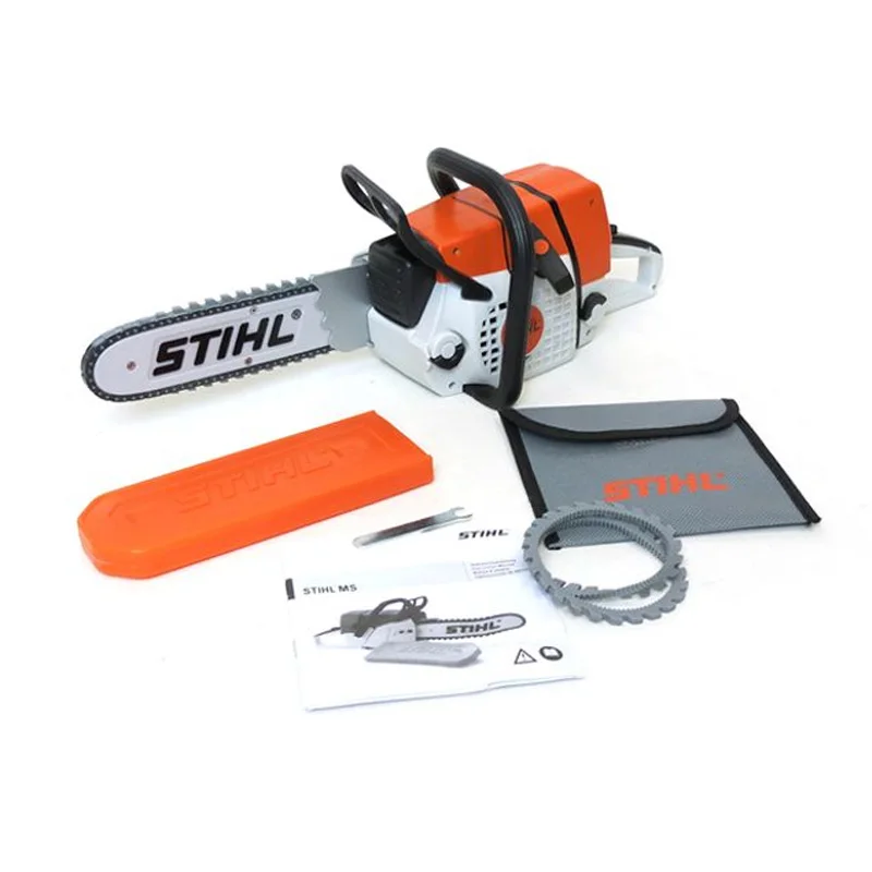 Toy chainsaw STIHL-an excellent gift for a small assistant in the garden. When you press the trigger, the chain of the chainsaw begins to rotate and the saw reproduces the sound of a real working chainsaw.