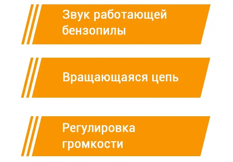 It turns on the saw simply and as real-you need to pull the starter cord, turns off the saw by pressing the suction cup lever or reducing the sound level. Fuel for the operation of children's chainsaw are finger batteries, which need 3 pieces, complete with batteries in the right number are available. In addition to batteries, the kit includes a wrench, a spare chain, a bag, an instruction. The length of the product is 40 cm.