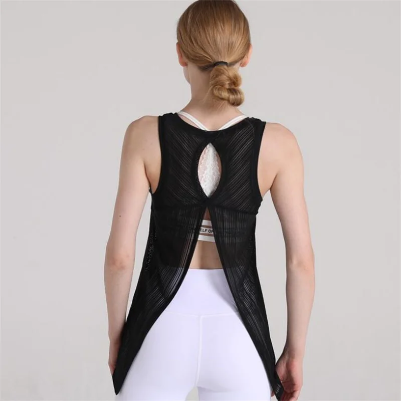 Ins/Новинка, быстросохнущая сетчатая блузка для занятий йогой и фитнесом, свободная дышащая майка для бега, футболка без рукавов, ультратонкая открытая крутая летняя майка