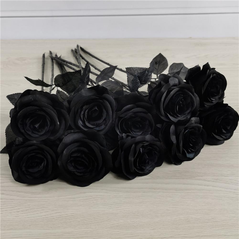 Вы можете воспользоваться этой искусственной черной розой как практичным аксессуаром для вечерние украшения, свадебного украшения и дизайна ландшафтного дизайна, потому что она имеет превосходный дизайн темного цвета, готический стиль и высокая имитация розы, которые заставляют вас украсить пространство без каких-либо проблем.