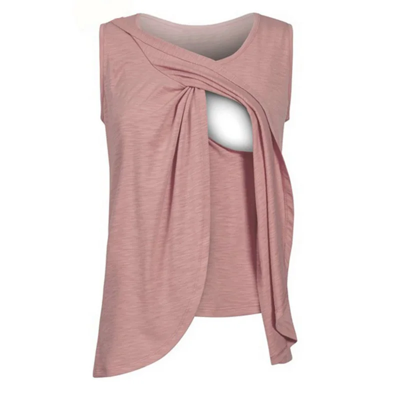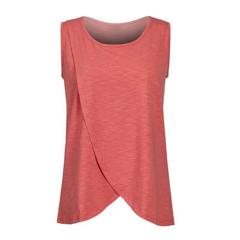 Популярная летняя новая одежда без рукавов для кормящих матерей, Футболка для беременных женщин с круглым вырезом, без рукавов, асимметричный подол, одежда для кормящих матерей, футболка