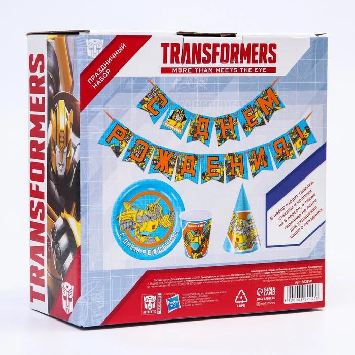 Набор бумажной посуды С днем рождения! Трансформеры, на 6 персон 6629141