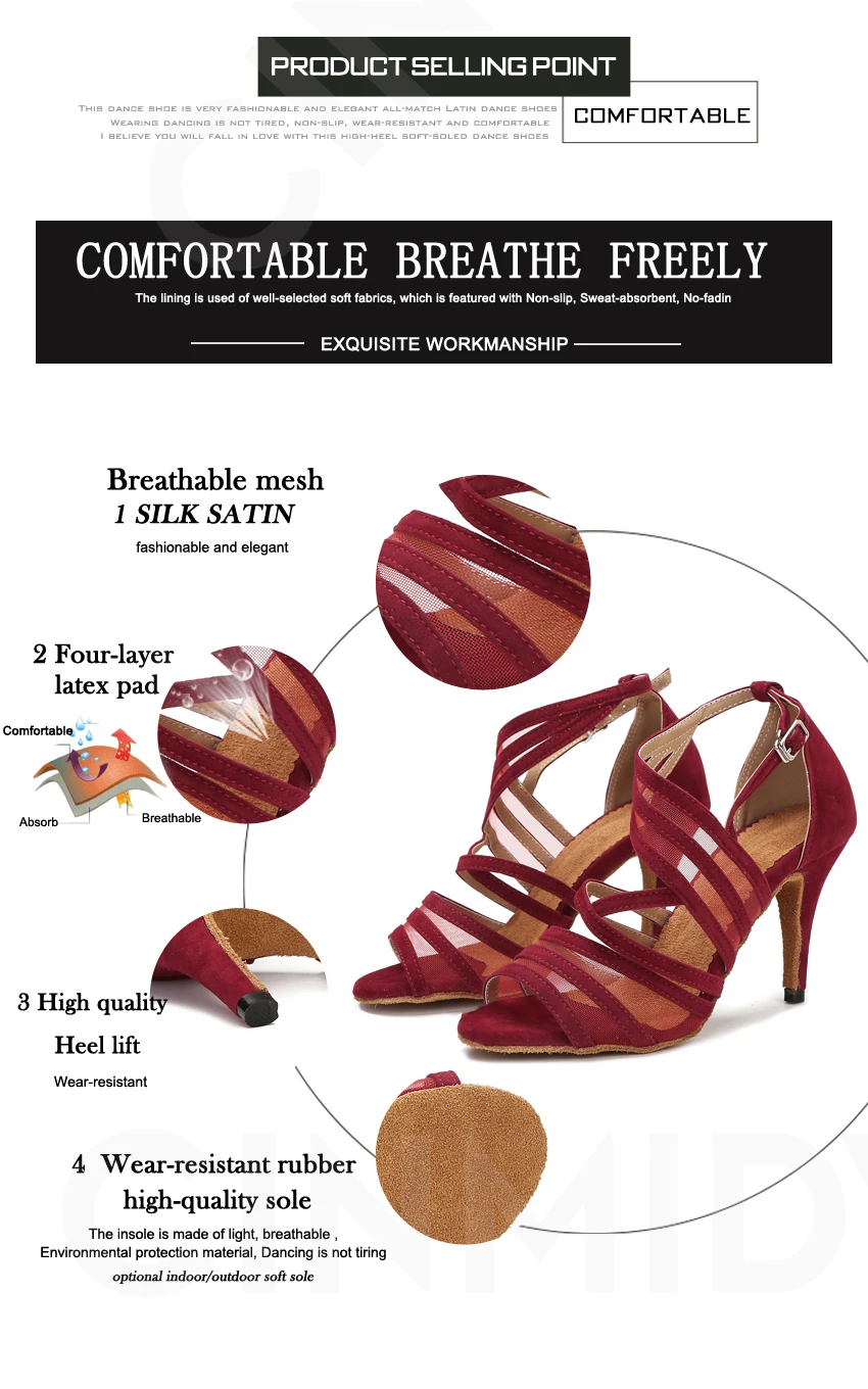 Эта танцевальная обувь очень модная и элегантная, подходящая ко всему обувь для латинских танцев, не устает, не скользит, износостойкая и удобная, Я уверен, что вы влюбитесь в эту обувь на высоком каблуке с мягкой подошвой для танцев s.