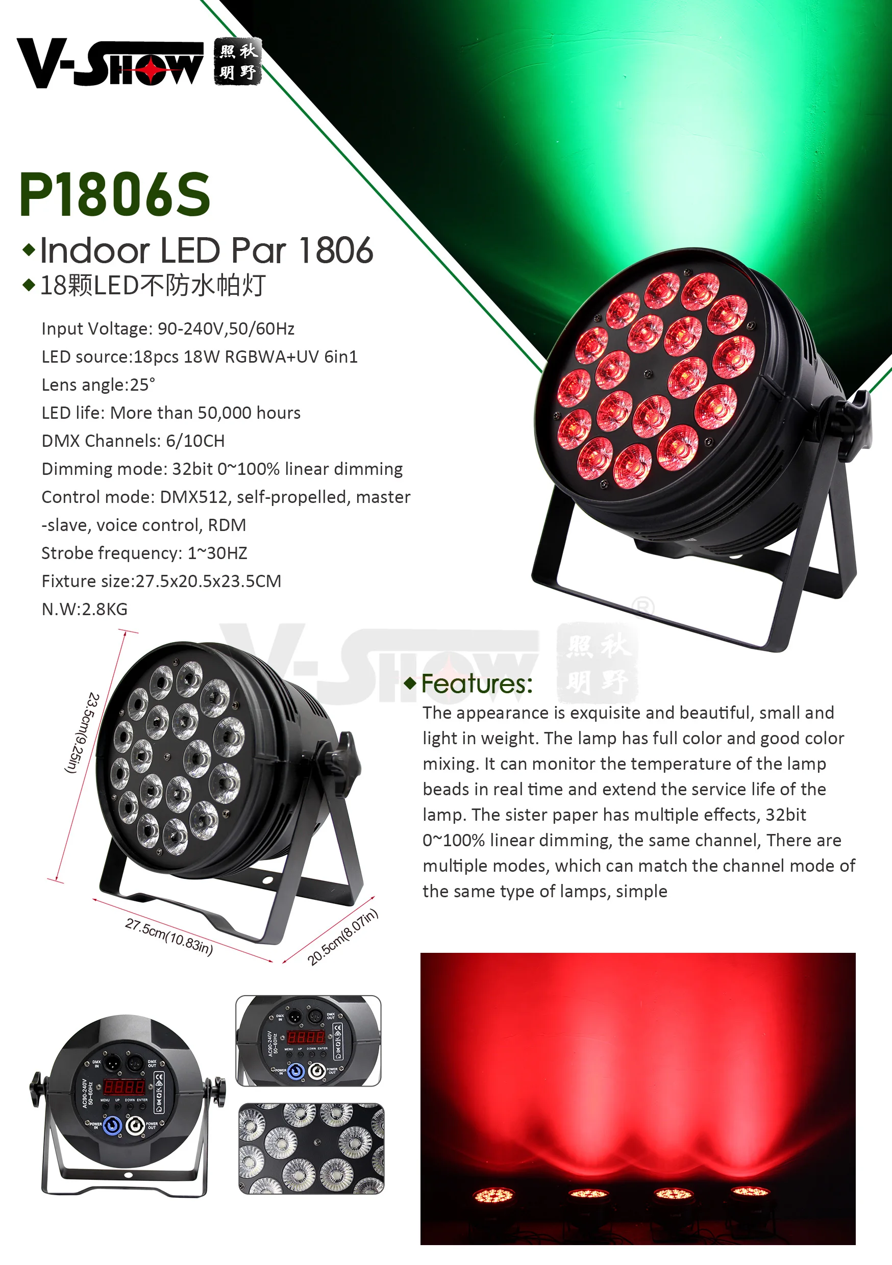 Очень яркие и красочные профессиональные сценические огни, рекомендуемые для DJ, большой и средний сцена, концерты, свадьбы, церкви, банкетного зала, оперного театра, внутреннего представления, клуба, группы и т. Д.