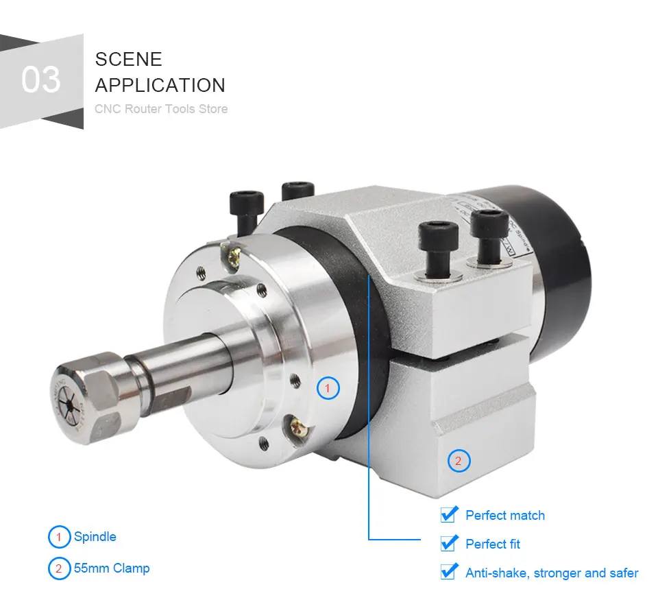 Параметры зажима двигателя шпинделя 55 мм: