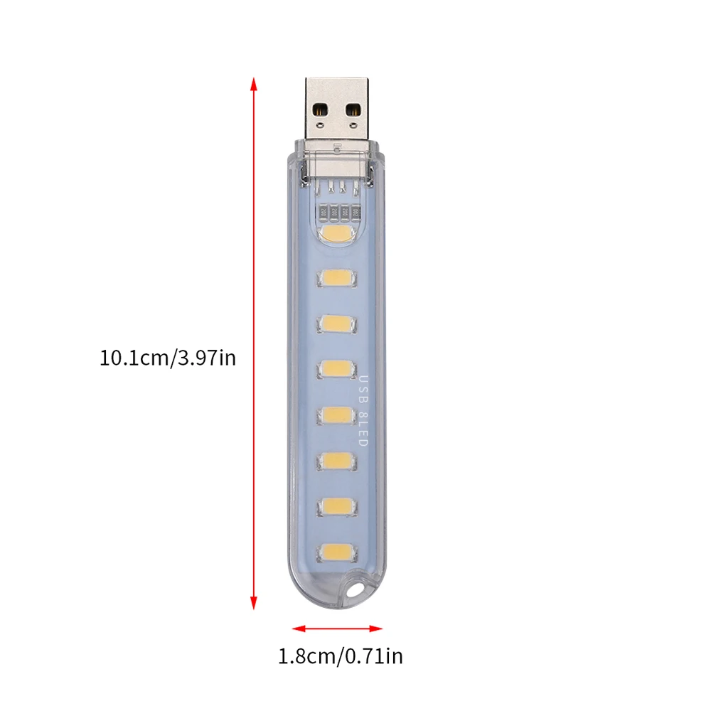 Светильник USB разработан с универсальным usb-портом, удобен в использовании, и он работает с 1/3/8 бусинами, удовлетворяя ваши ежедневные потребности.