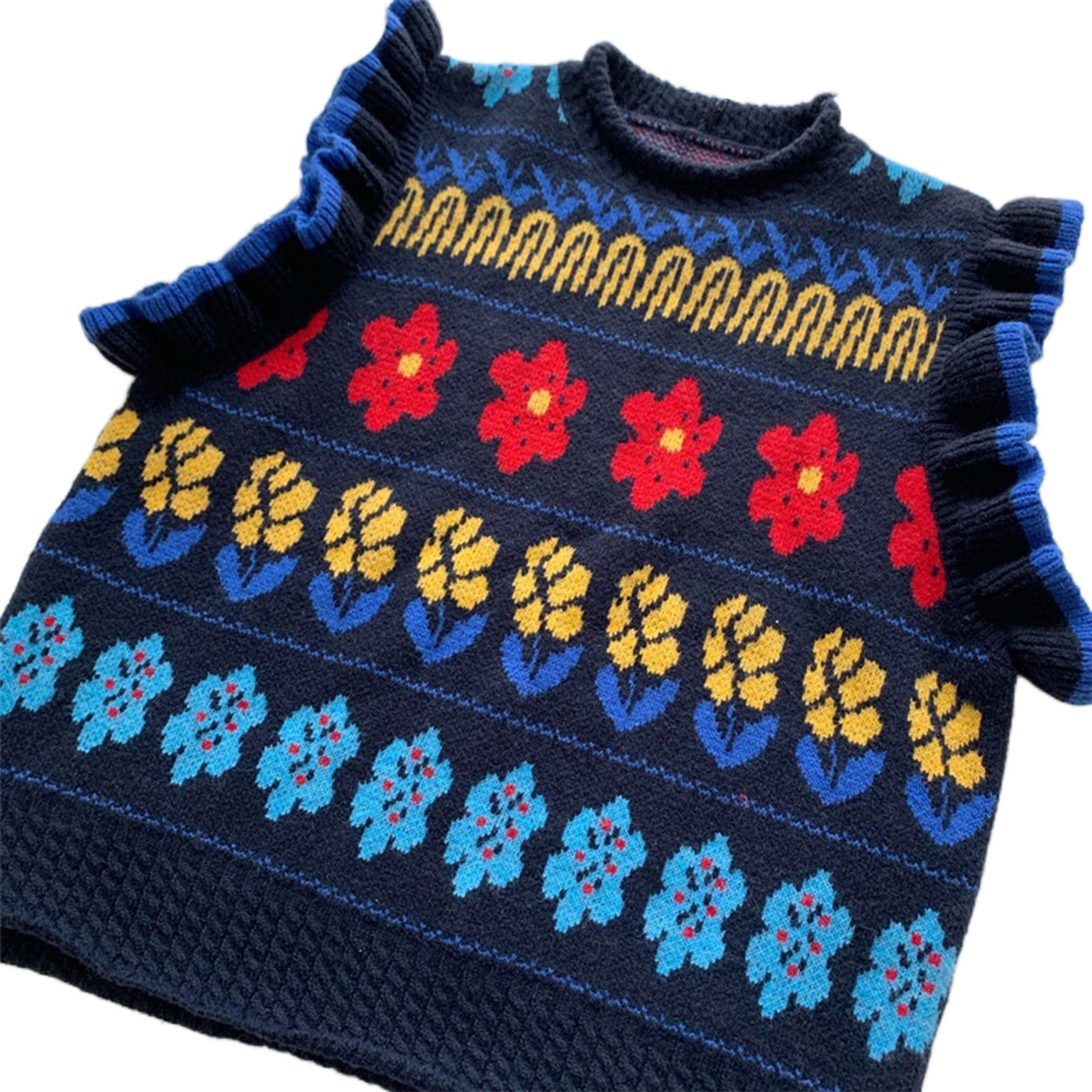 Женский темпераментный вязаный жилет, Осенний винтажный цветочный узор, круглый воротник, рукава-крылышки, кружевная трикотажная одежда, повседневные свободные топы