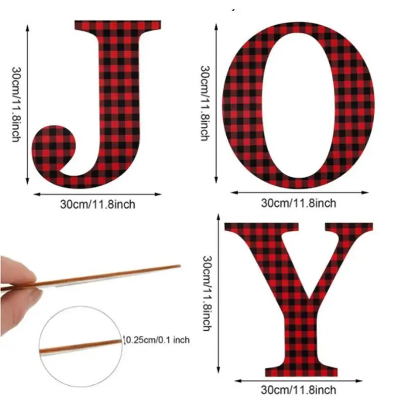 1.3 Big letters "JOY" or 4 "HOME" . The size is 30*30cm (11.8*11.8inch). The letters are big enough to be seen from a distance. The size is right and can be used as a Christmas fireplace decoration.