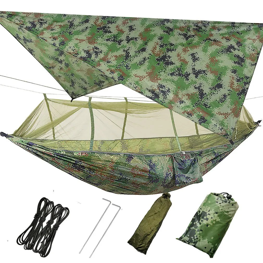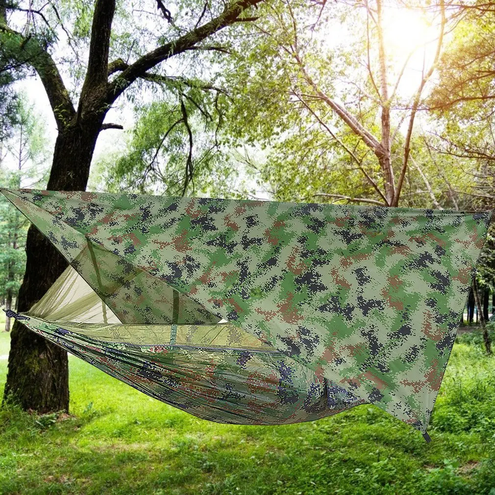 Материал гамака: 210 нейлоновый спиннинг + зашифрованная сетка, камуфляж-полиэфирная ткань