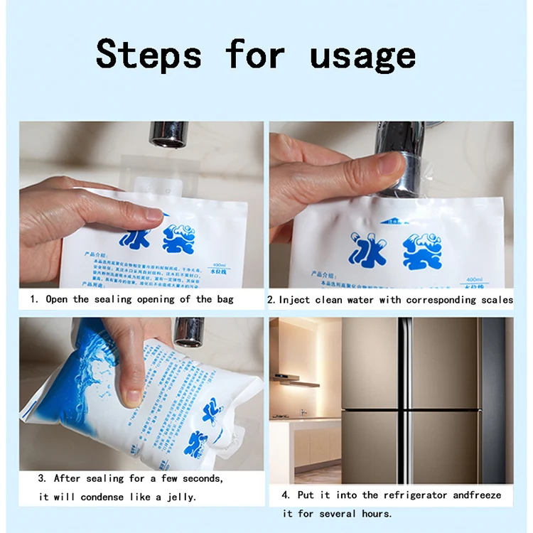 1. Налейте воду в пакет (100 - 600 мл). Вода в пакете станет гелем.