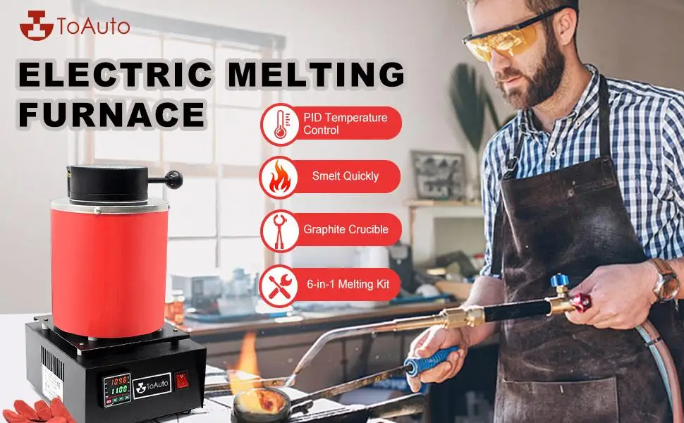 TOAUTO 3 кг плавильная печь для золота, 1400W 2000F цифровой электрическая плавильная печь с Графитовый тигель для расплава лом, серебро, золото, Медь, Алюминий 110V переработки отливки