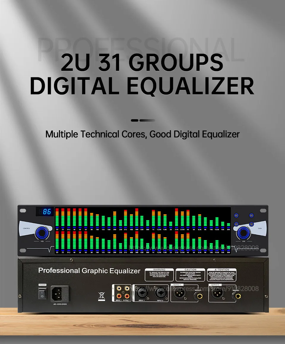 Использует инновационные технологии и передовые технологии производства, чтобы создать двойной 31-полосным эквалайзером. Усовершенствованная конструкция цепи и выбор высококачественных компонентов позволяют эквалайзеру легко достичь частотной реакции 10 Гц-50 кГц, Отношение сигнал/шум более 90 дБ, общее гармоническое искажение менее 0.005% и Изоляция канала более 90 дБ.