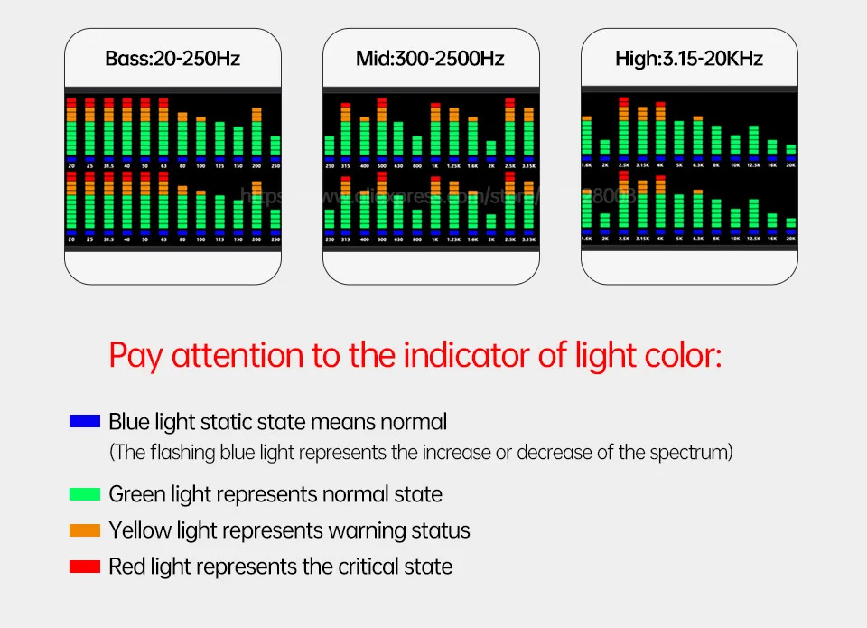 Поверните ручку, чтобы перейти на 20-20K частотный диапазон, синий светильник ниже соответствующего диапазона частот