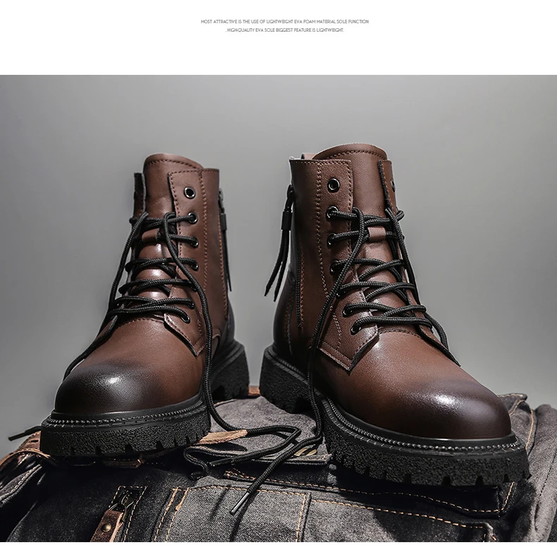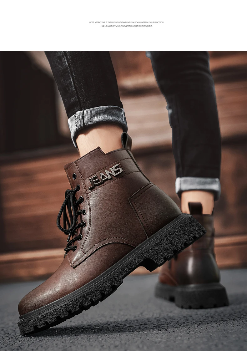 Джинсы; Новинка; Мужские ботинки; Кожаные водонепроницаемые ботинки в стиле милитари; Мужские осенние ботильоны; Легкая обувь; Мужская зимняя повседневная обувь на нескользящей подошве
