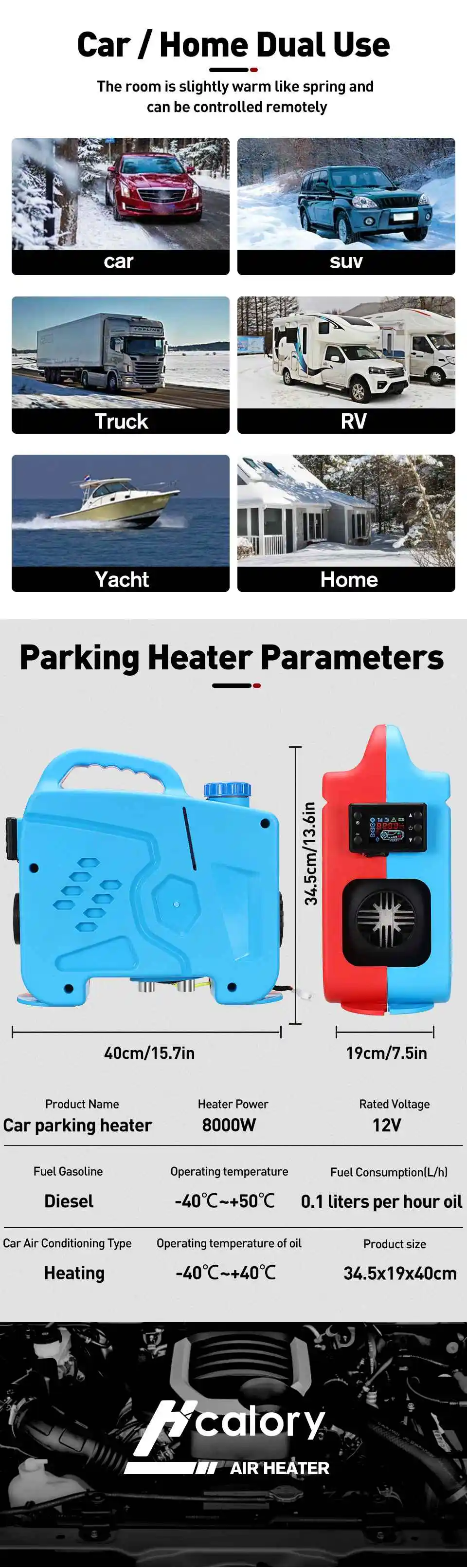 Наименование: Дизельный подогреватель воздуха все в одном 12 В 8 кВт