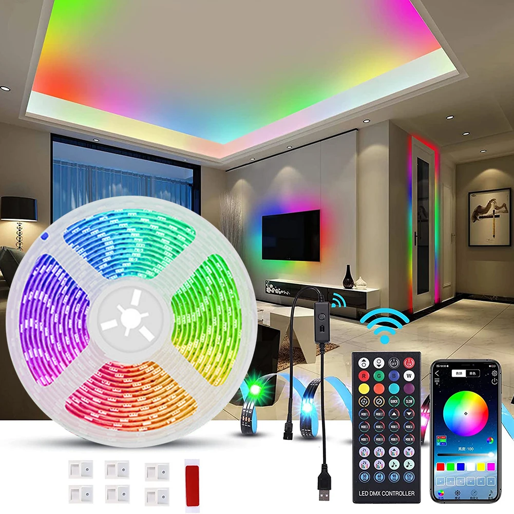Этот светильник бар оснащен 40-ключ Bluetooth совместимым управления через приложение, которое может быть контролируется мобильный телефон и дистанционный пульт. Контроллер имеет кнопки, которые также могут управлять полоской лампы. Этот продукт может регулировать светильник, цвет, время, голосовое управление музыкой и другие режимы. Корпус лампы имеет встроенный чип IC, который может реализовывать эффекты контроля точки постепенного изменения, прыжков и побега воды, и имеет изысканный и разнообразный режимы. Он также имеет функцию голосового управления музыкой, чтобы идеально сочетать звук с цветом лампы и имеет такие функции, как автоматическая память после выключения.