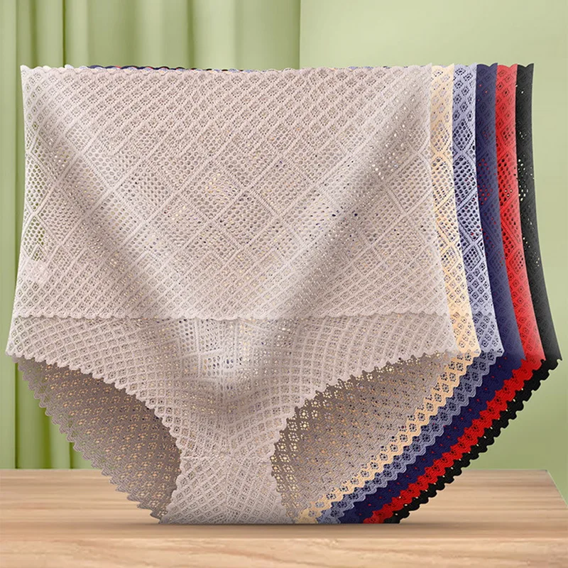 Женское нижнее белье большого размера, дышащие кружевные однотонные Трусики с высокой талией, женское нижнее белье, ромбовидная сеть, трусы.