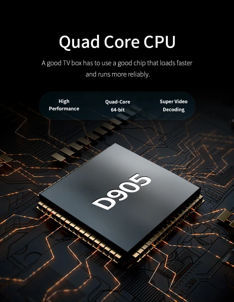 Процессор: для Amlogic S905X до 1,5 ГГц, четырехъядерный процессор для ARM Cortex-A53