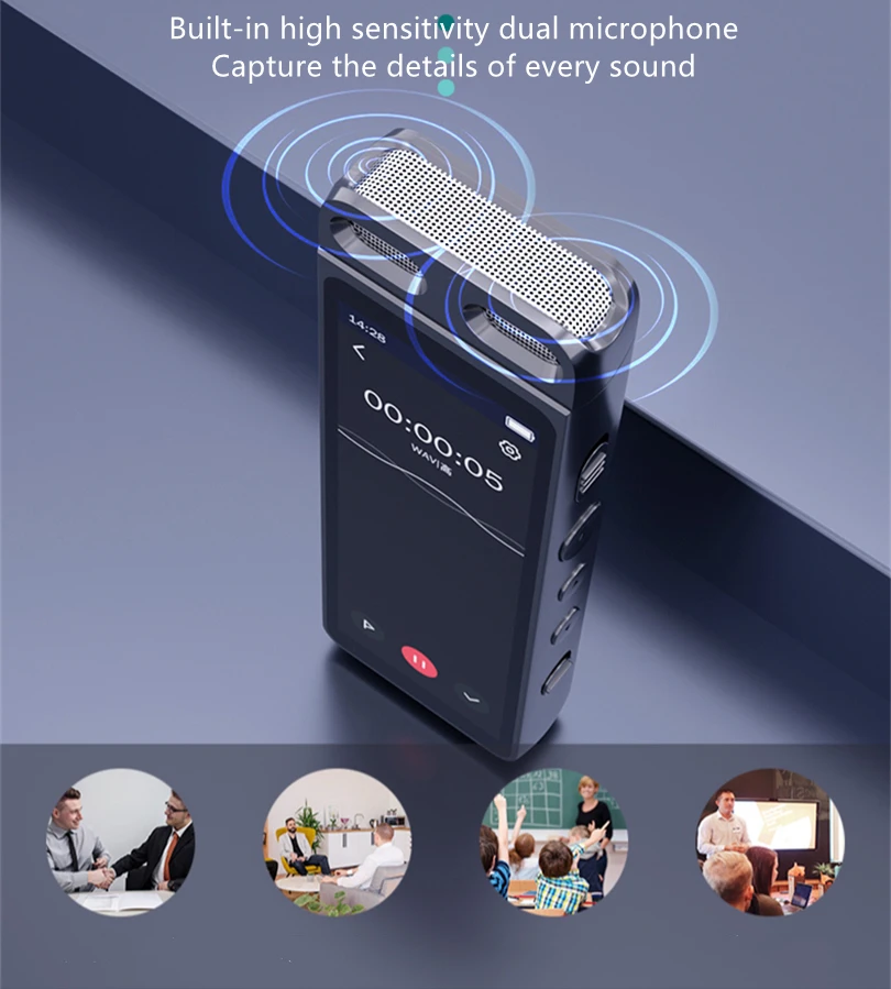 Встроенный интеллектуальный чип динамического шумоподавления DSP, отличная технология цифрового шумоподавления с высоким разрешением, чтобы обеспечить качество записи. WAV MP3 WMA три формата записи для опции, поддержка голосовой записи. Последующее чтение, лучший обучающий инструмент.Отображение текстового содержимого, A-B повторение.