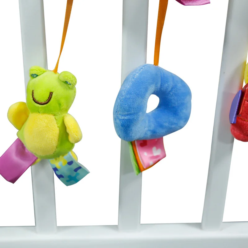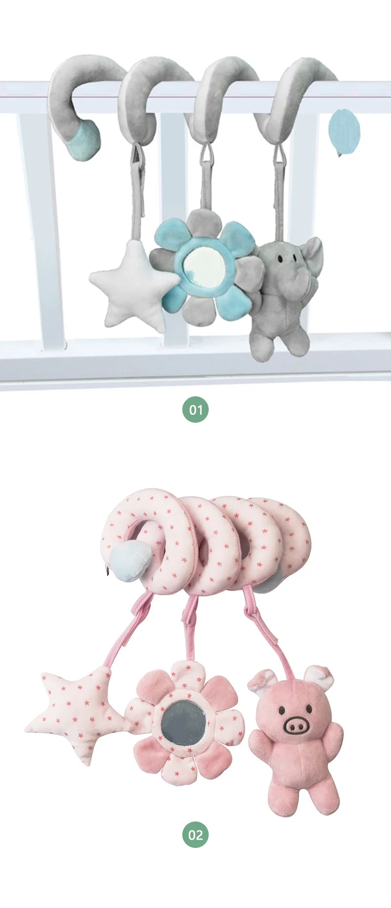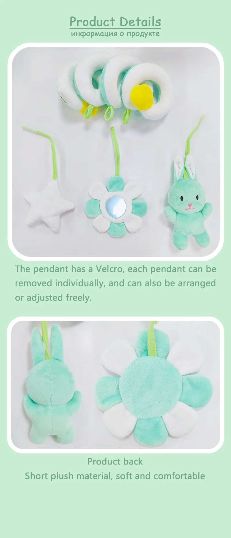 -Подвесное украшение для кроватки можно легко подключить к ручке автомобильного сиденья, большинству колясок и кроваток.