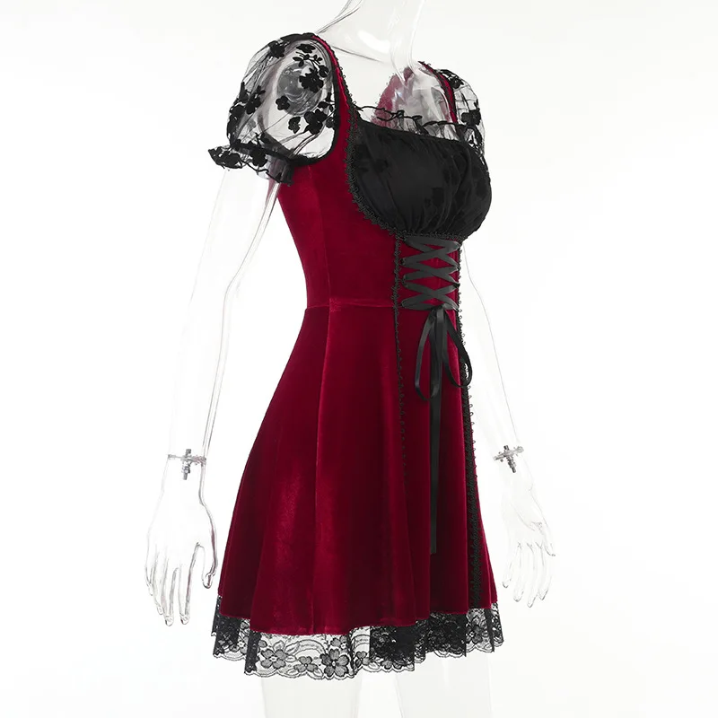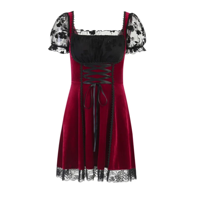 Кружевное лоскутное платье с коротким рукавом и пуш-ап