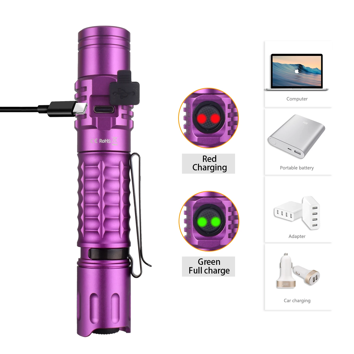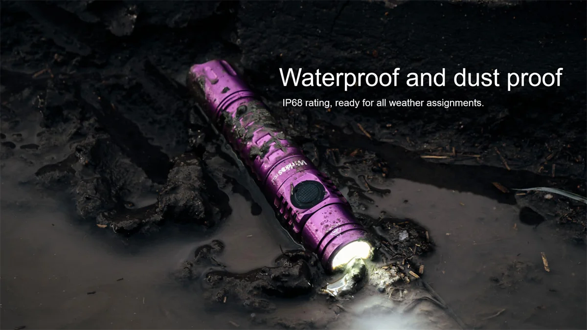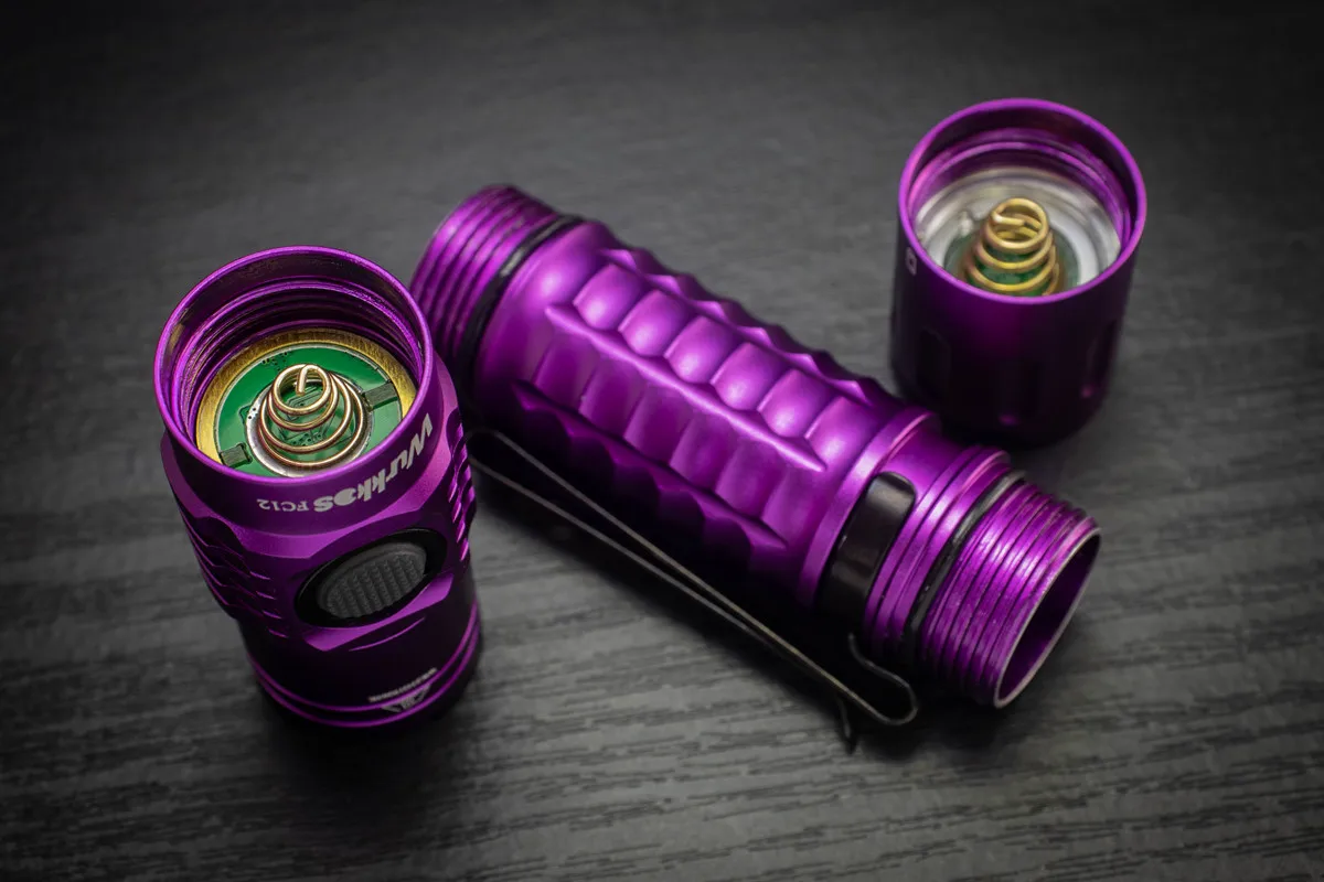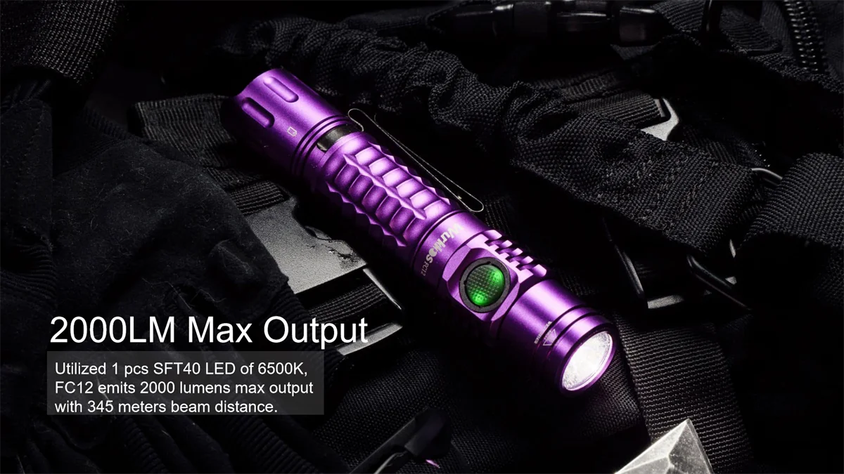 Wurkkos FC12 is a powerful EDC flashlight for indoor or outdoor use. It uses a single 18650 battery and features a USB-C port for convenient recharging, a super bright LED with up to 2000 lumens and 345 Meters throw distance. Furthermore, it’s user interface with both stepped modes and stepless ramping as well as a more advanced temperature regulation (ATR) with smart heat control.