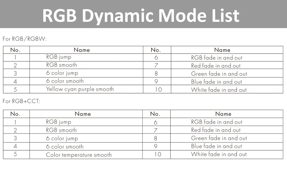 Примечание: он используется для 5 видов различных светодиодных лент-светильник,-Одноцветный, CCT, RGB, RGBW, RGBCCT светодиодный ленточный светильник.