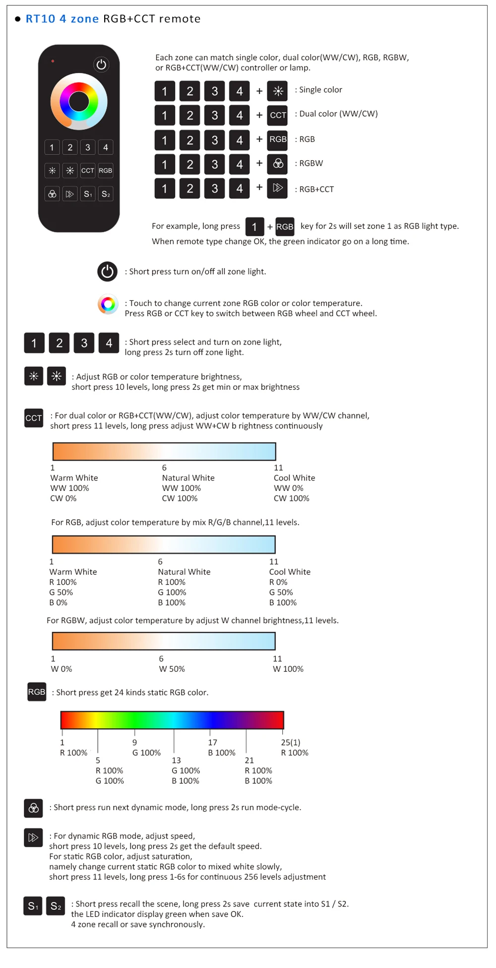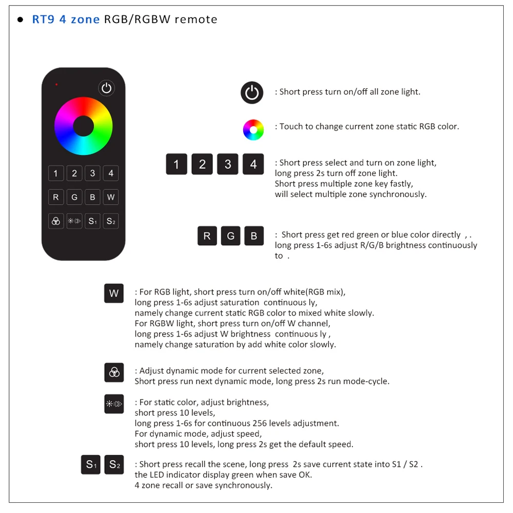 ● Функция 5 в 1, используется для управления RGB, RGBW, RGB + CCT, цветовая температура или одноцветная светодиодный лента.