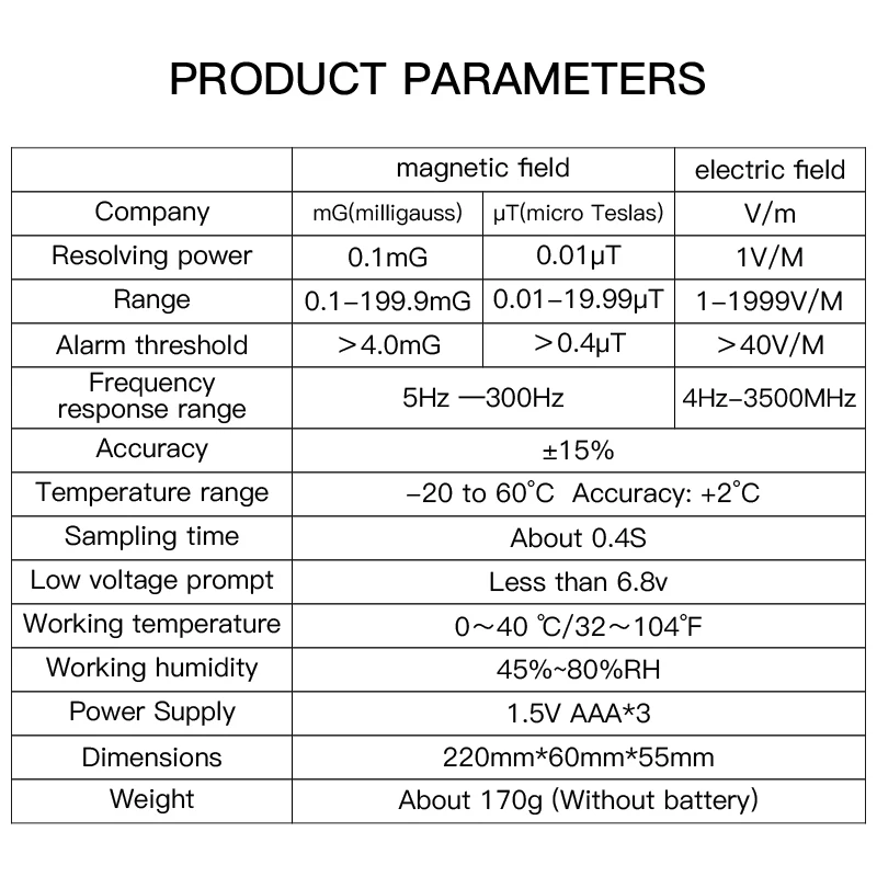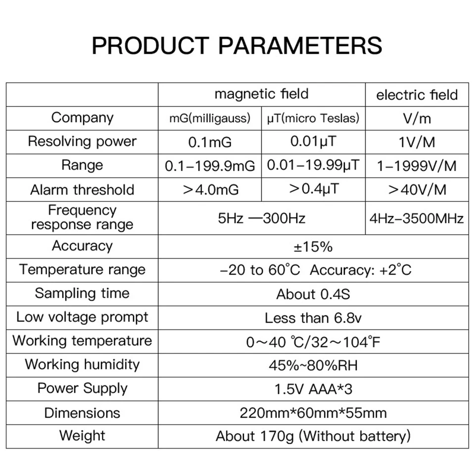 -Широкое применение: Измерение излучения телевизора, индукционной плиты, рисоварки, холодильника, компьютера, приборов, электрических проводов и т. Д.