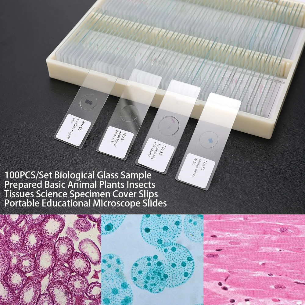 100 готовых слайдов, включая растения, насекомые и ткани животных. Изысканные образцы выбираются из различных категорий. Подходит для использования в биологическом обучении. Отличительный подарок для детей!