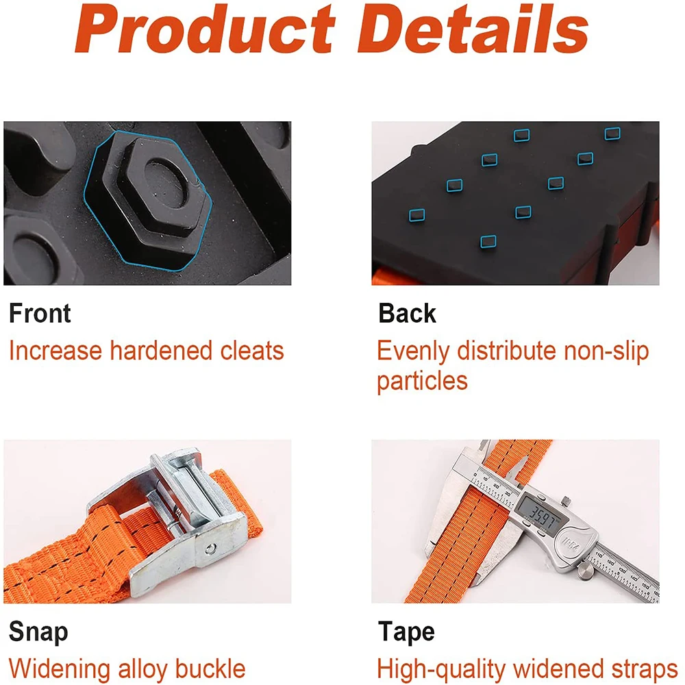 Идеальный эффект-Использование специальной противоскользящей поверхности шероховатой поверхности, что увеличивает трение в дороге. Он защищает автомобильную шину от проскальзывания и повышает способность скользящей шины извлекать себя из плохой ситуации тяги, доставляя вас в стабильную местность.