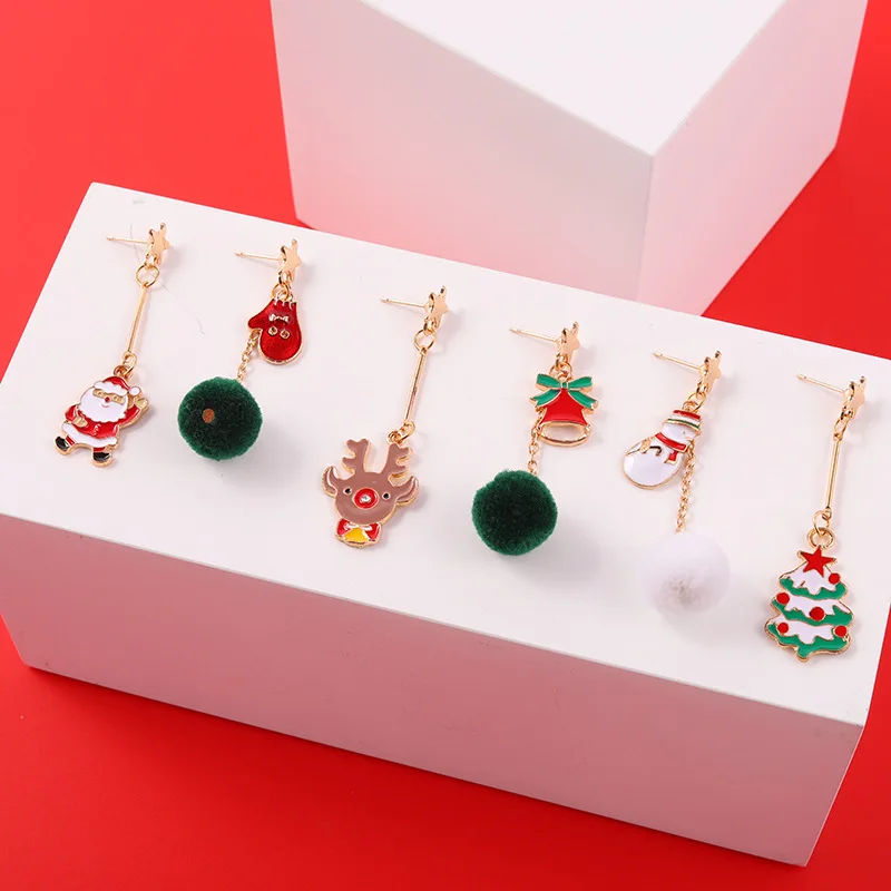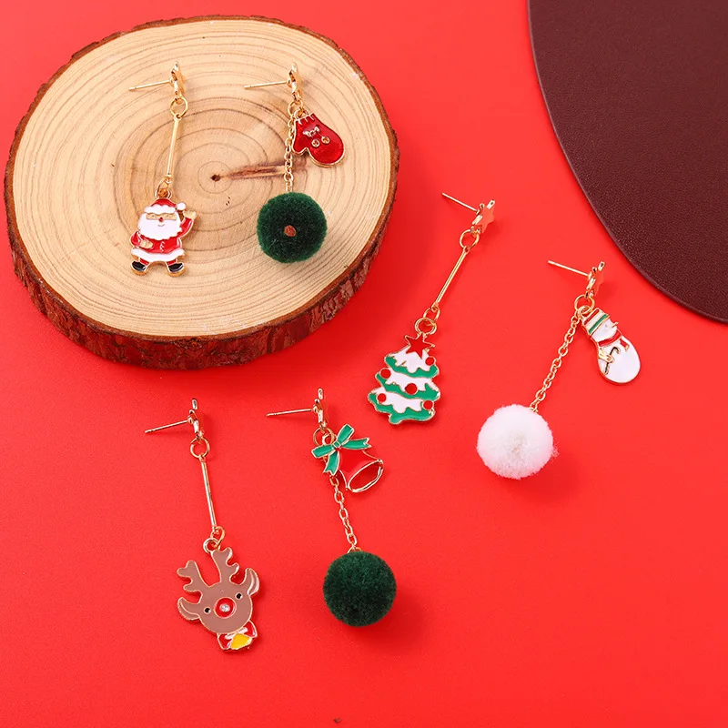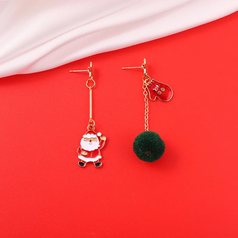 Красные и зеленые плюшевые серьги с Санта-Клаусом, рождественские плюшевые серьги, серьги в форме оленьих рогов