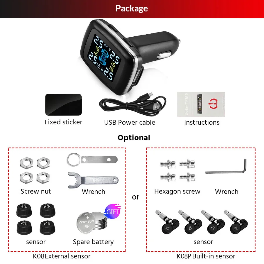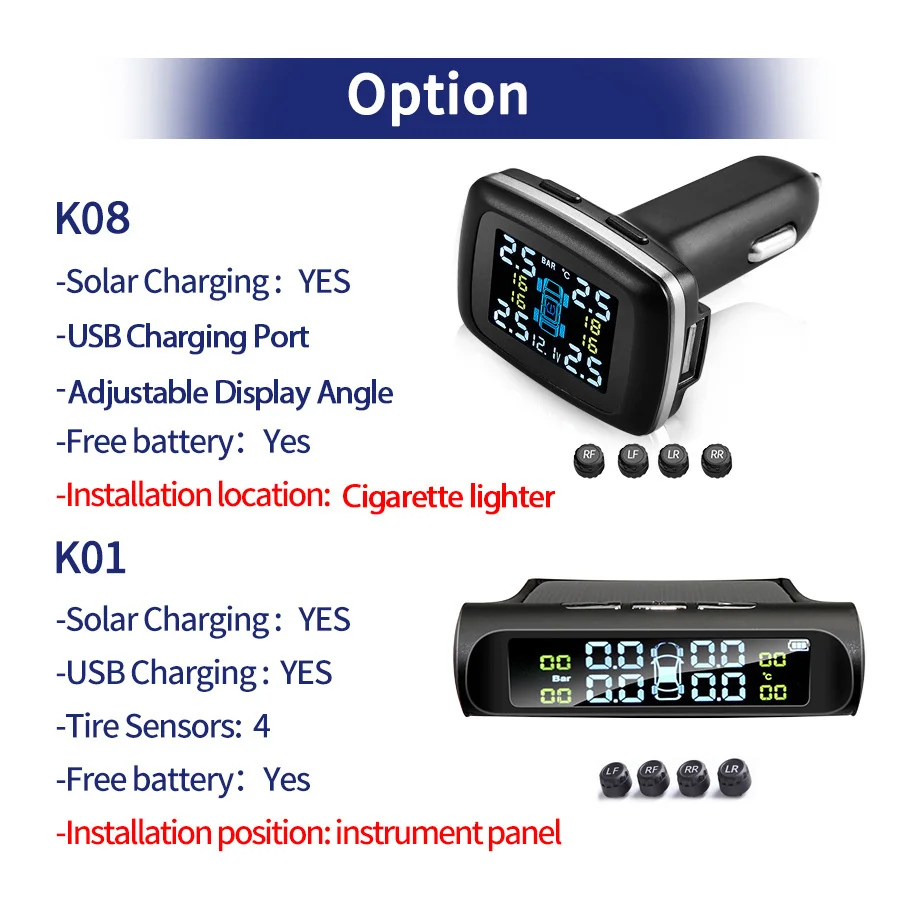 Безопасность во-первых, исключите все проблемы автомобильных шин перед ездом по дороге. Автомобиль TPMS K08/K08P/K01 может сделать это