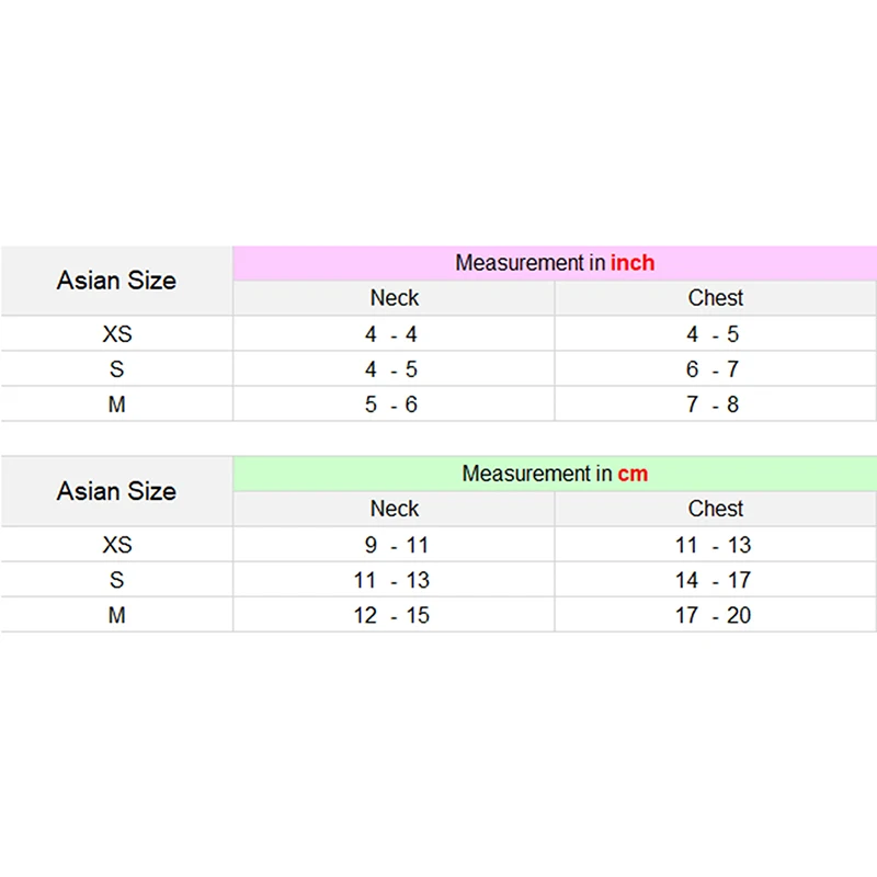Размер: XS: обхват шеи: 9-11 см, обхват груди: 11-13 см